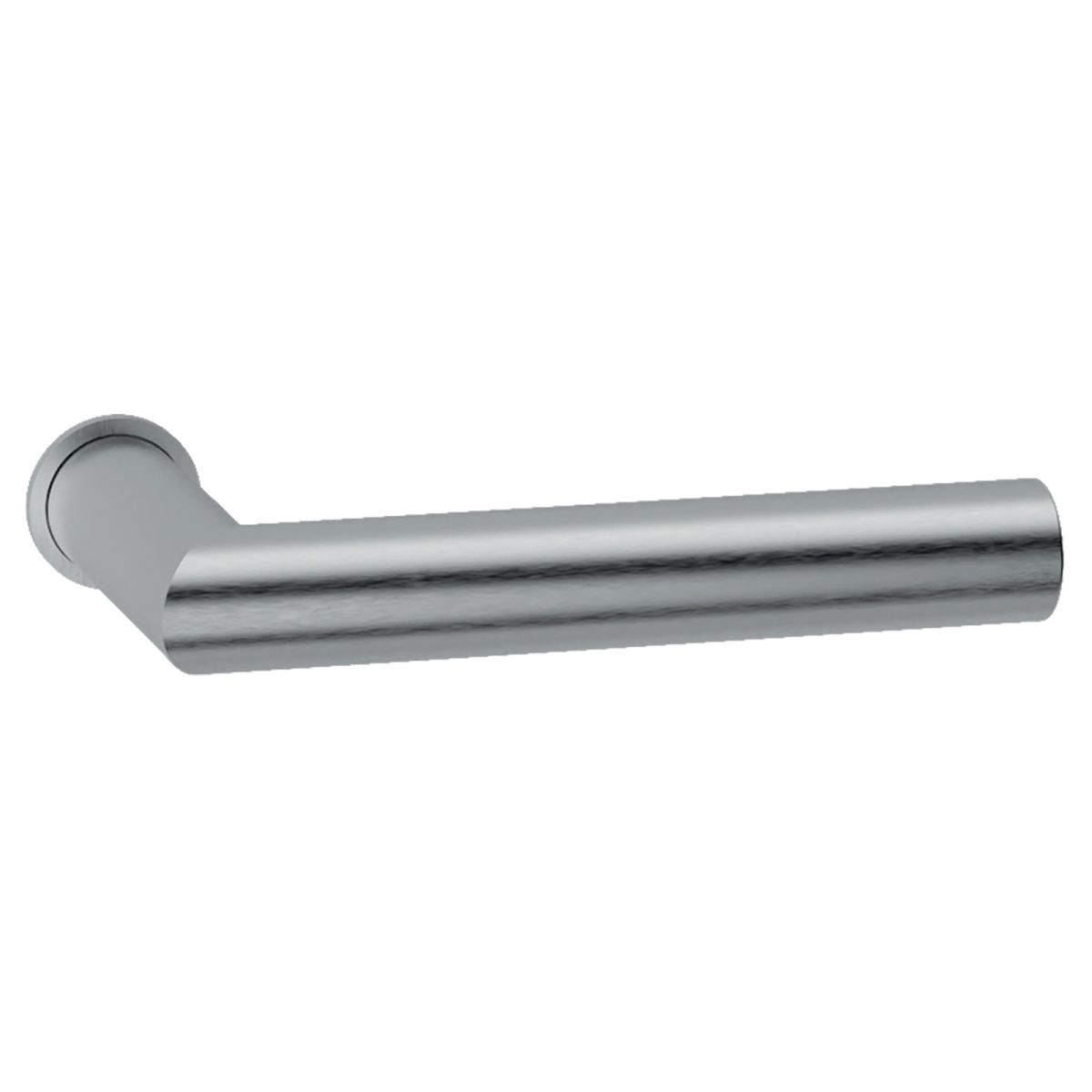 Maniglia in acciaio per porta Toledo Minimal L14 Reguitti Inox con rosetta tonda. Design by Studio Reguitti Inox.