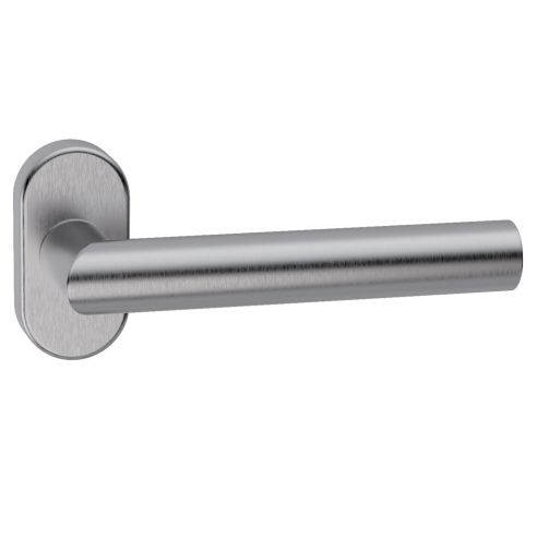 Maniglia ribassata in acciaio per porta Toledo B B14 Reguitti Inox con rosetta ovale. Design by Studio Reguitti Inox.