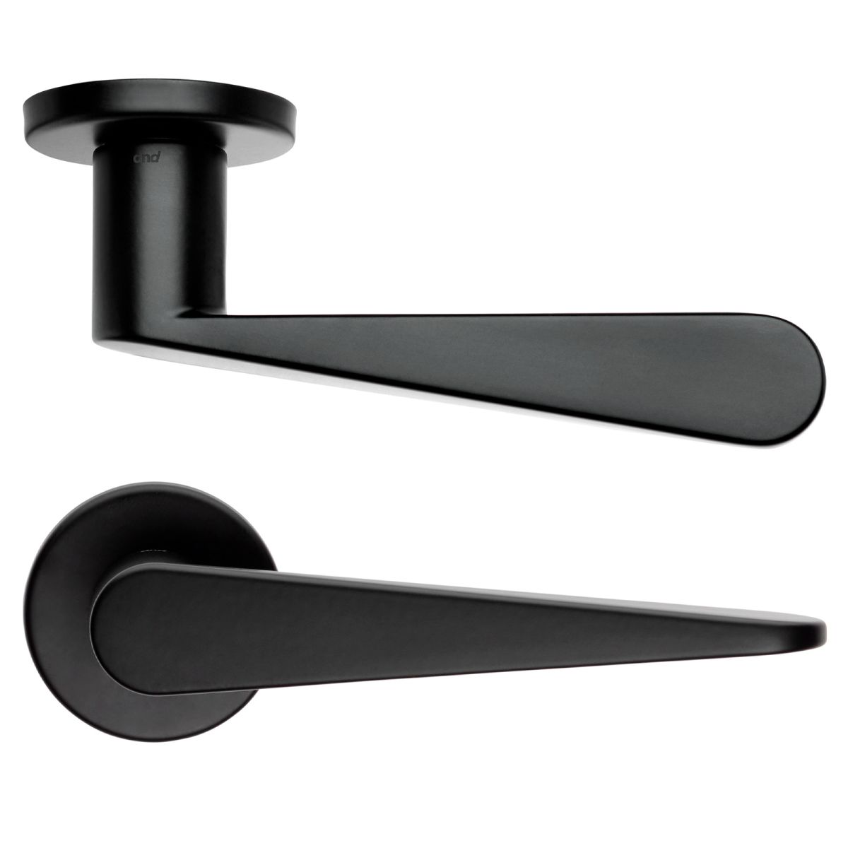 Maniglia per porta interna Iki dnd Handles con rosetta e bocchetta tonda. Design by Mario Scairato e Alessandro Stabile.