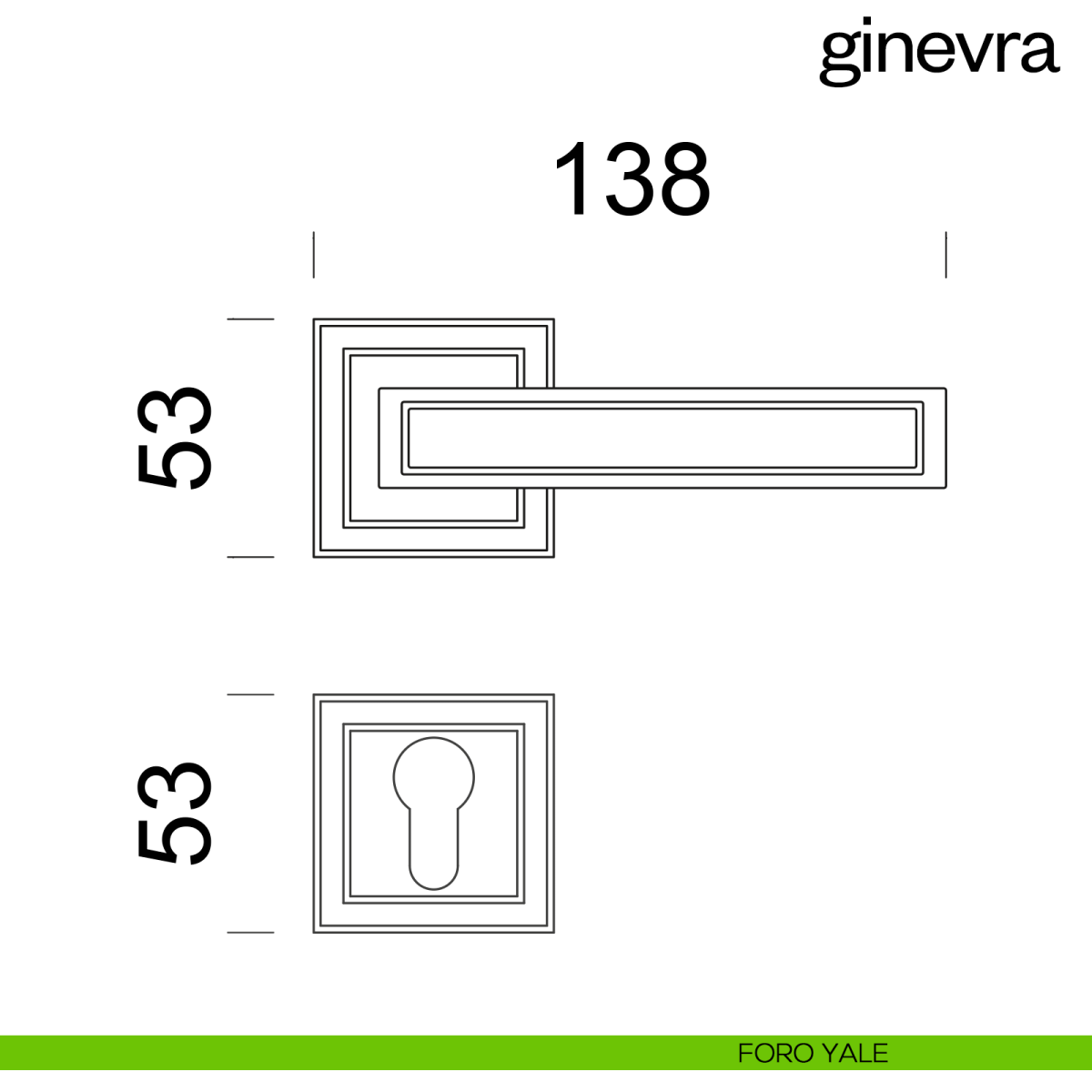 Maniglia per porta interna Ginevra dnd Handles con rosetta e bocchetta quadrata. Design by Dnd Techinical Division.