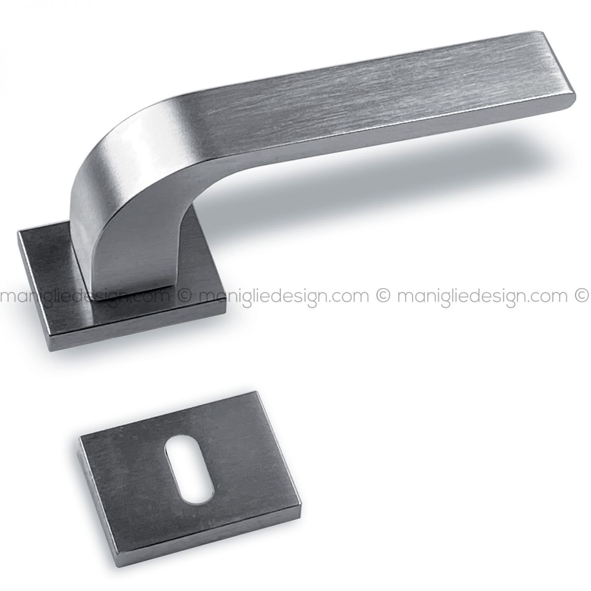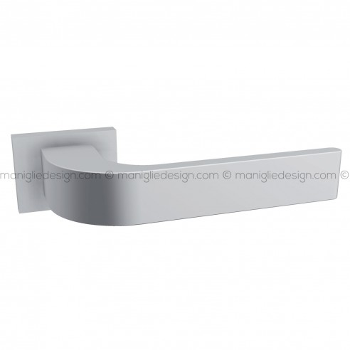 Maniglia per porta Alu 458 Comit con rosetta e bocchetta rettangolare.