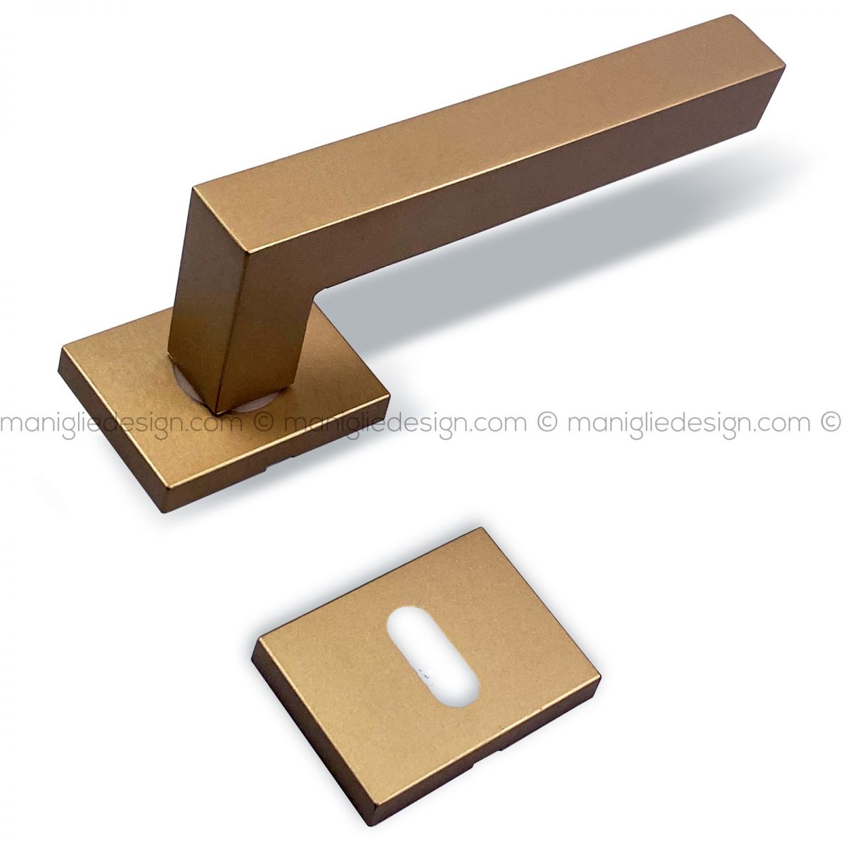 Maniglia per porta Alu 430 Comit con rosetta e bocchetta rettangolare.