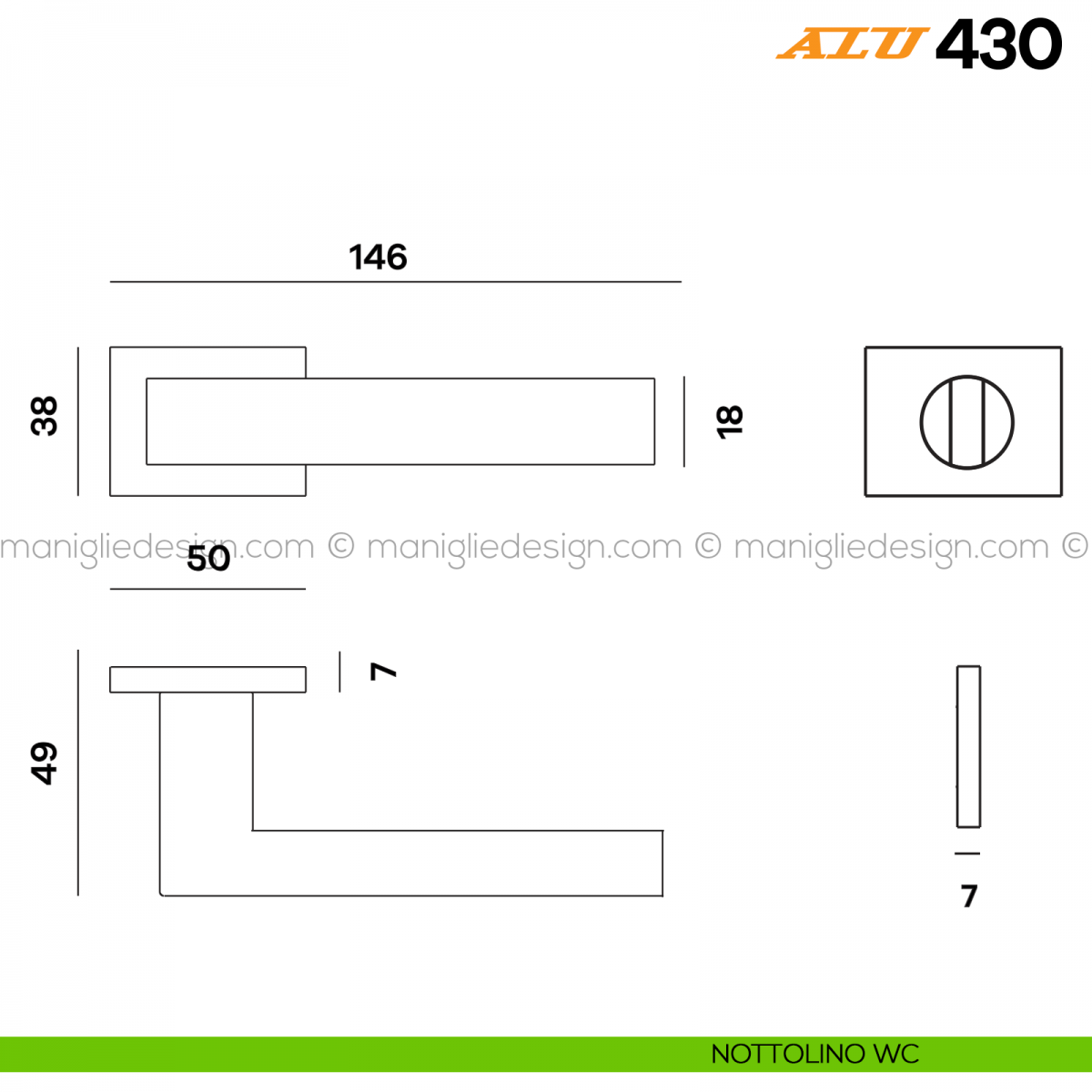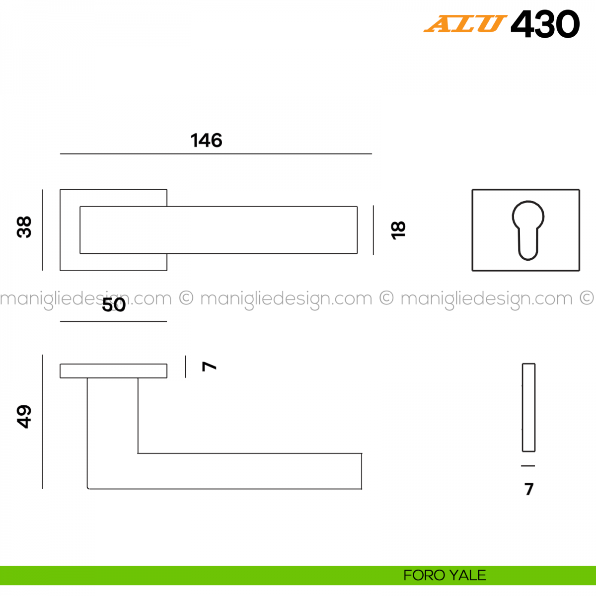 430 Alu Comit viene proposta in diverse configurazioni, il foro chiave (o foro patent) utilizzato più comunemente nelle porte interne, la versione con il foro cilindro (foro yale) per le porte d'ingresso o dove viene richiesta una chiusura più di sicurezza, il nottolino WC (in genere utilizzato nelle porte dei bagni o stanze da letto). Per un ottimale risultato di installazione è consigliato attenersi alle istruzione di montaggio di cui ogni prodotto Comit viene corredato.