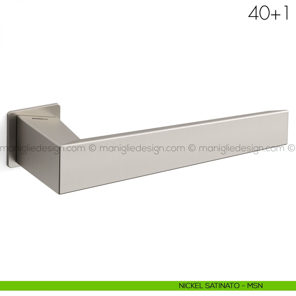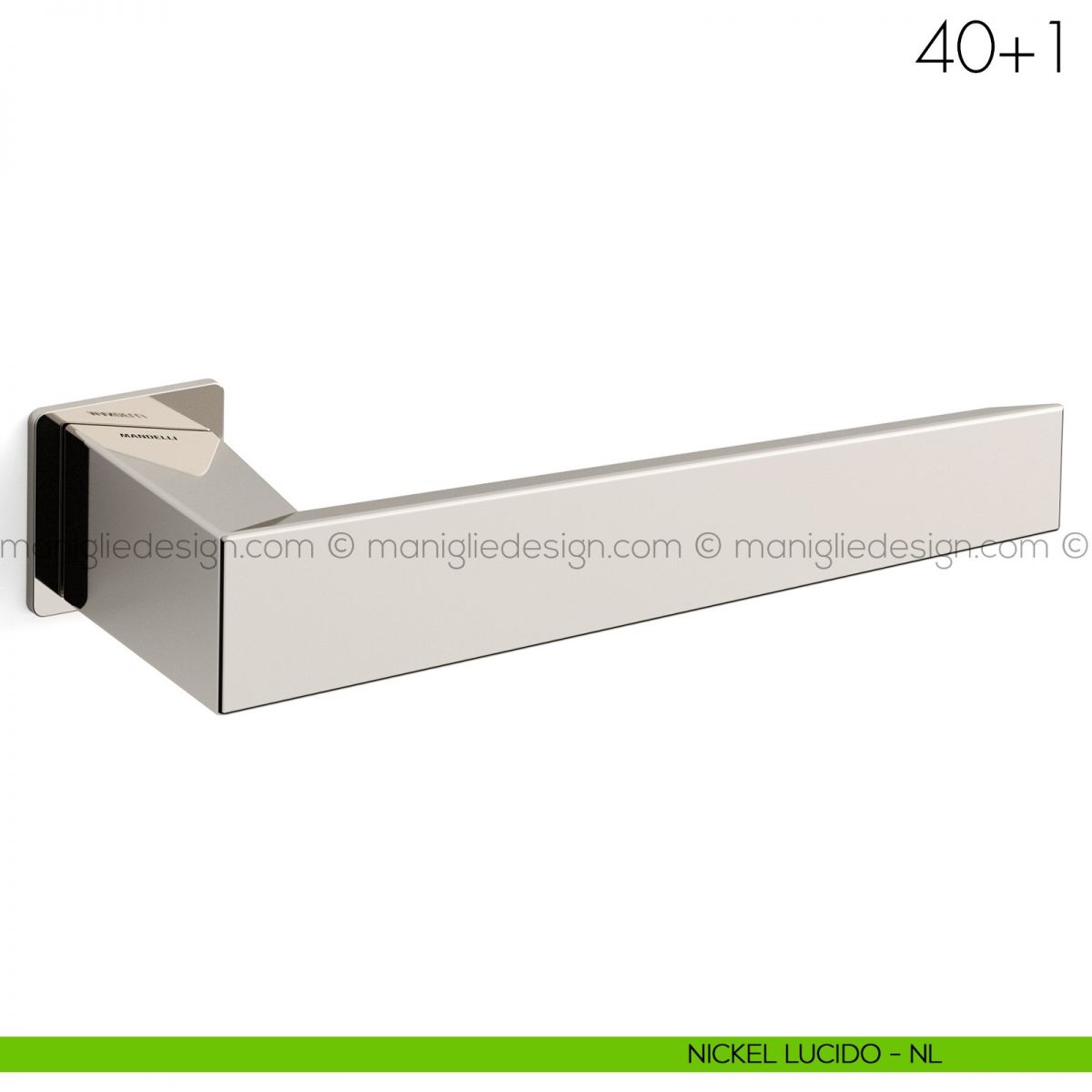 Gli Industrial Designer e Architetti Lorenzo Ponzelli e Francesco Valentini hanno lavorato sul concetto di linee pulite ma presenti con carattere per la maniglia 40+1 Mandelli, cercando di renderla elegante ma con semplicità. Per questo la forma rastremata dalla base punto in cui è fissata all'anta, fino alla punta, e allo stesso tempo piegata all'interno in modo da giocare con luci e ombre a rappresentare il taglio e la sfaccettatura delle pietre preziose. La punta invece condivide perfettamente l'inclinazione a 40 gradi del telaio Eclisse 40. La piega verso l'interno superiore e inferiore conferiscono una ergonomicità di impugnatura eccellente, caratteristica che la rendono unica nel panorama delle maniglie con linee squadrate.