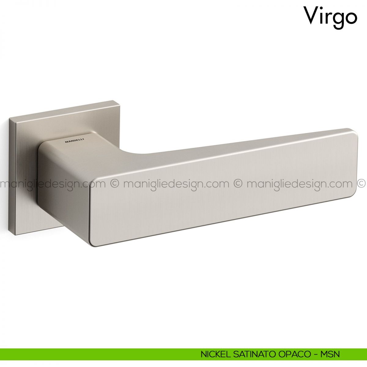 Maniglia per porta interna Virgo Mandelli con rosetta e bocchetta quadrata.