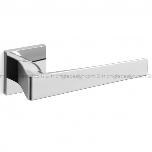 Maniglia per porta interna Seven Mandelli con rosetta e bocchetta quadrata. Design by Mandelli 1953.