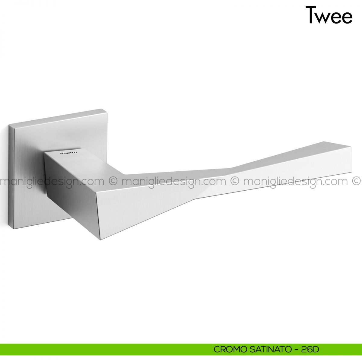 Maniglia per porta interna Twee Mandelli con rosetta e bocchetta quadrata. Design by Mandelli 1953.