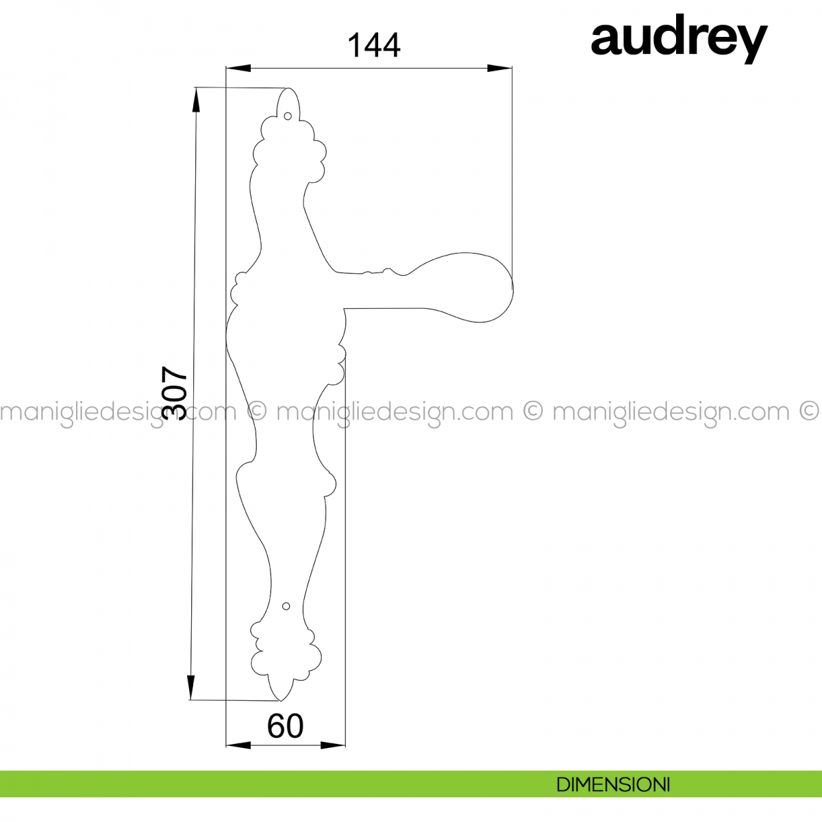 Maniglia per porta interna Audrey Poggi Mariani con placca.