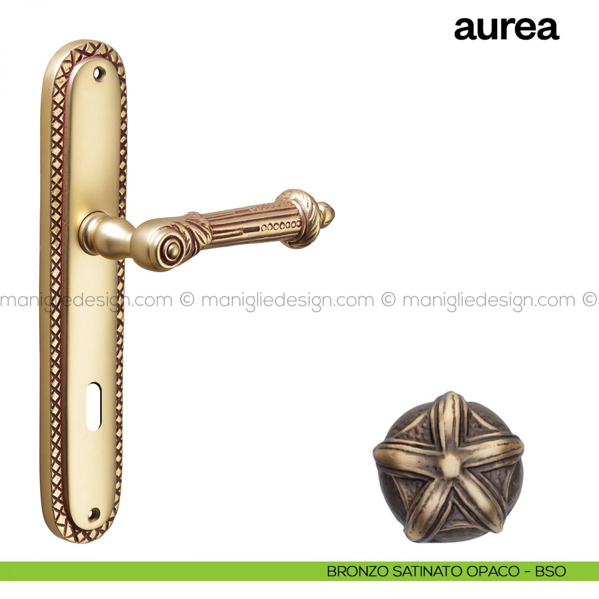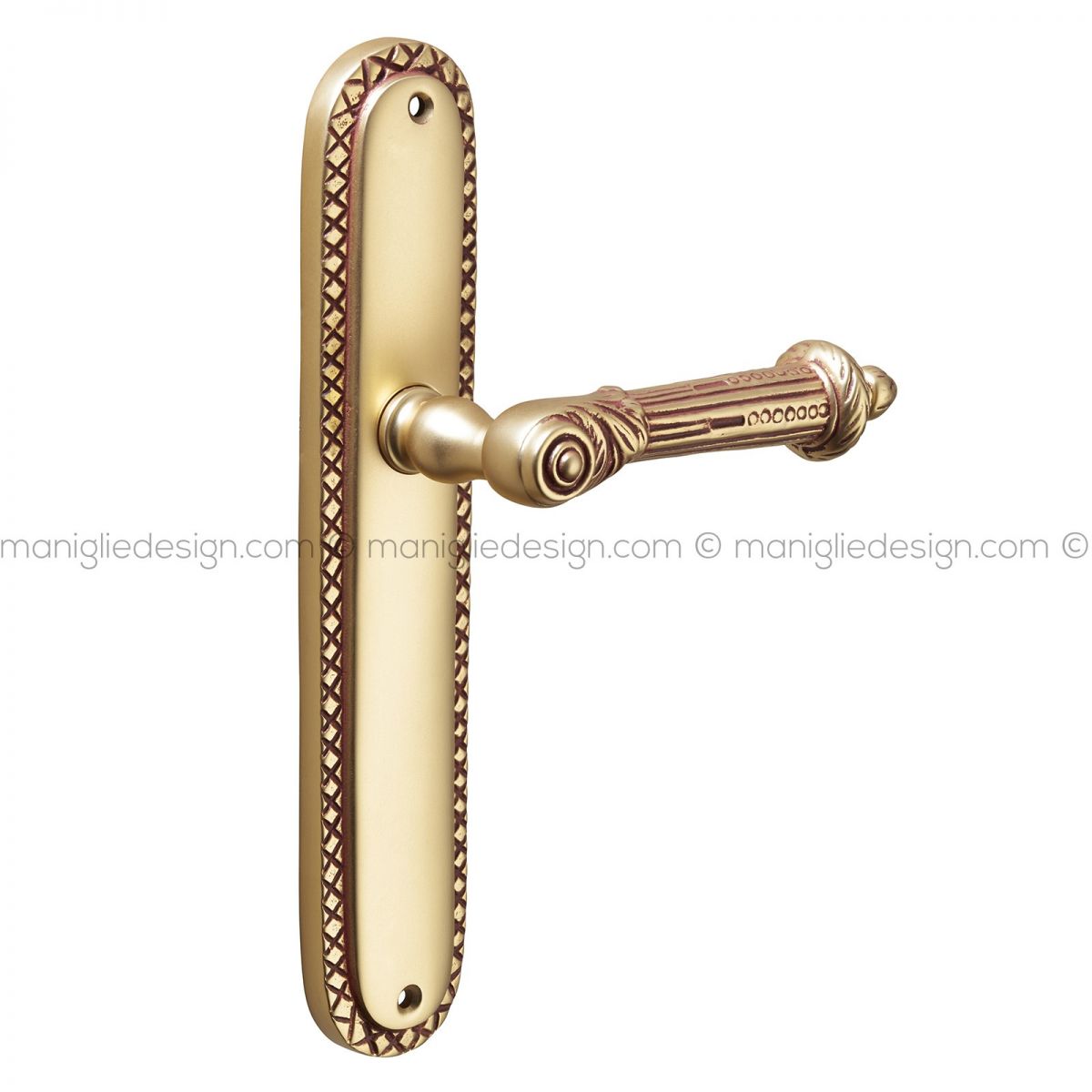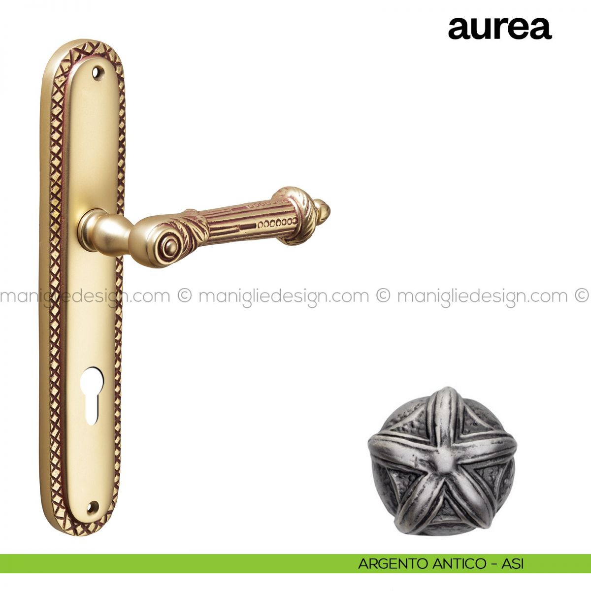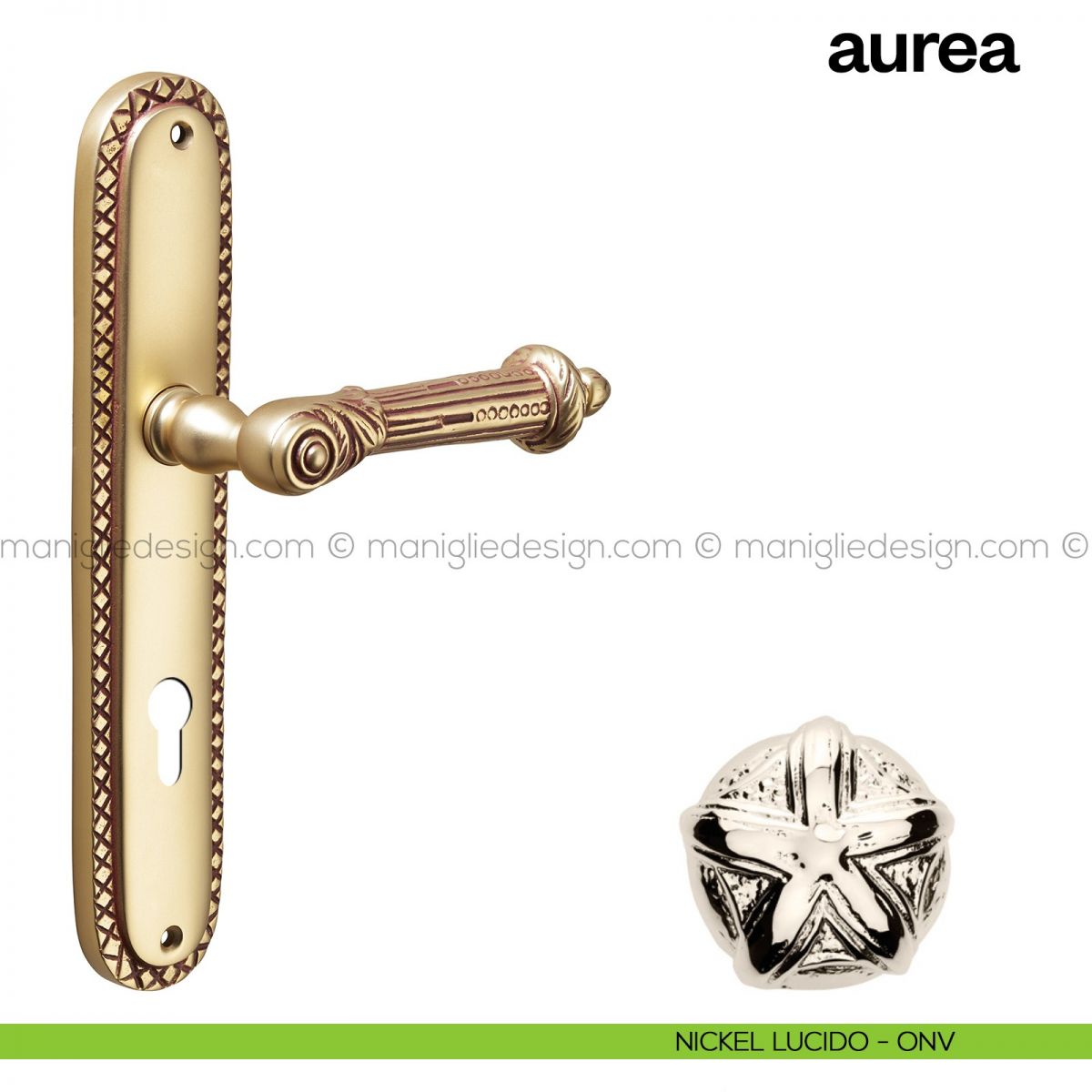 Maniglia per porta con placca Aurea Poggi Mariani oro francese antico - OROF foro patent