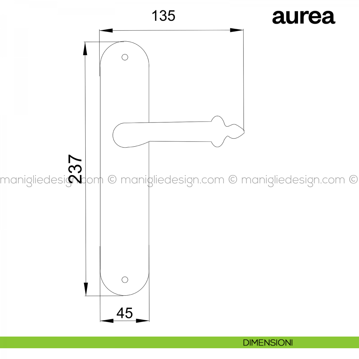 Maniglia per porta con placca Aurea Poggi Mariani foro patent interasse 90 mm