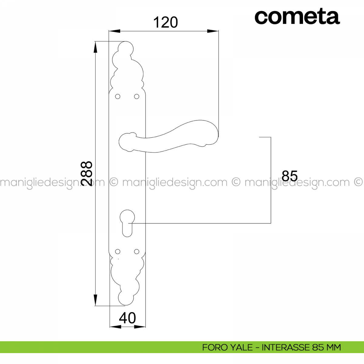 Maniglia per porta interna Cometa Poggi Mariani con placca.