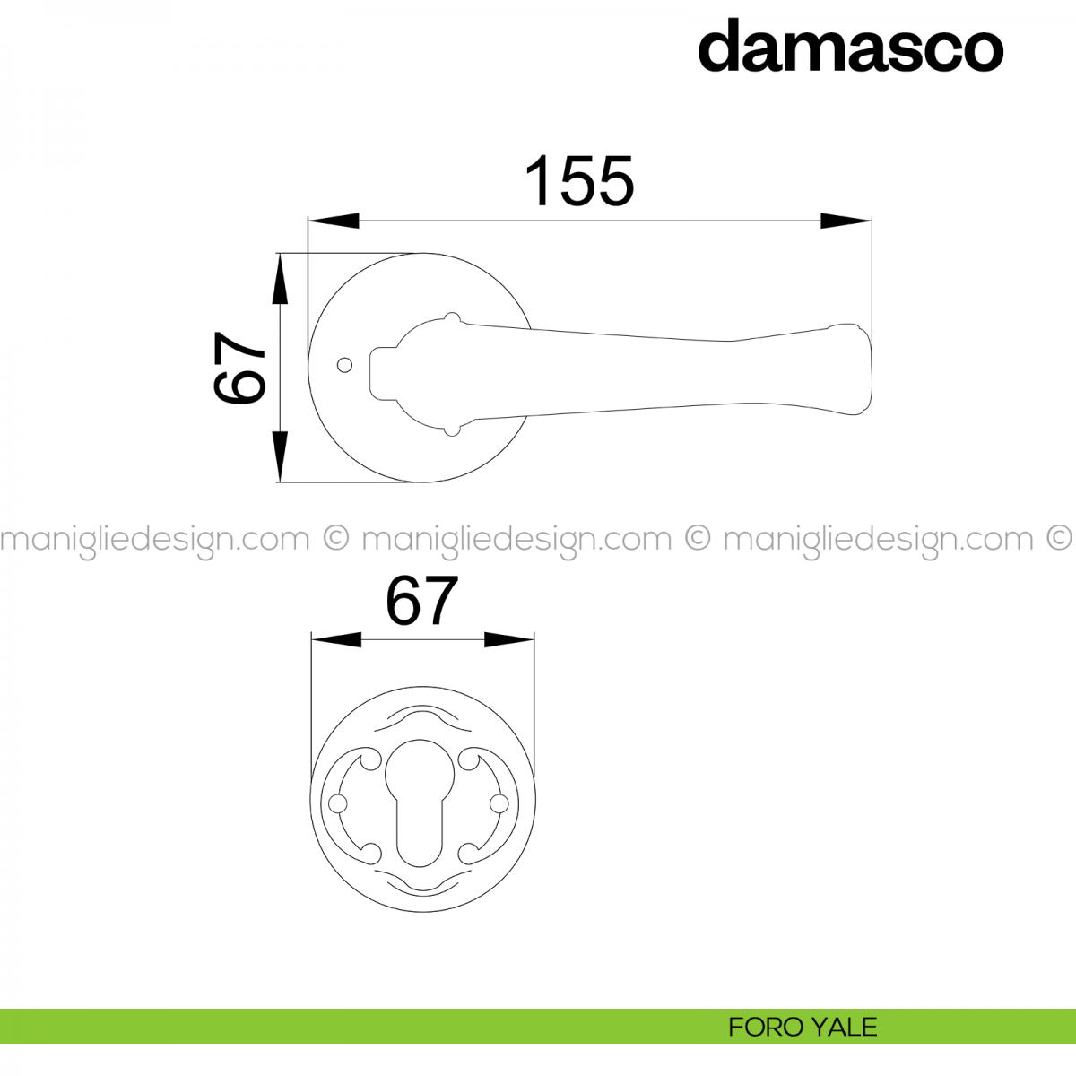Maniglia per porta interna Damasco Poggi Mariani con rosetta e bocchetta tonda.