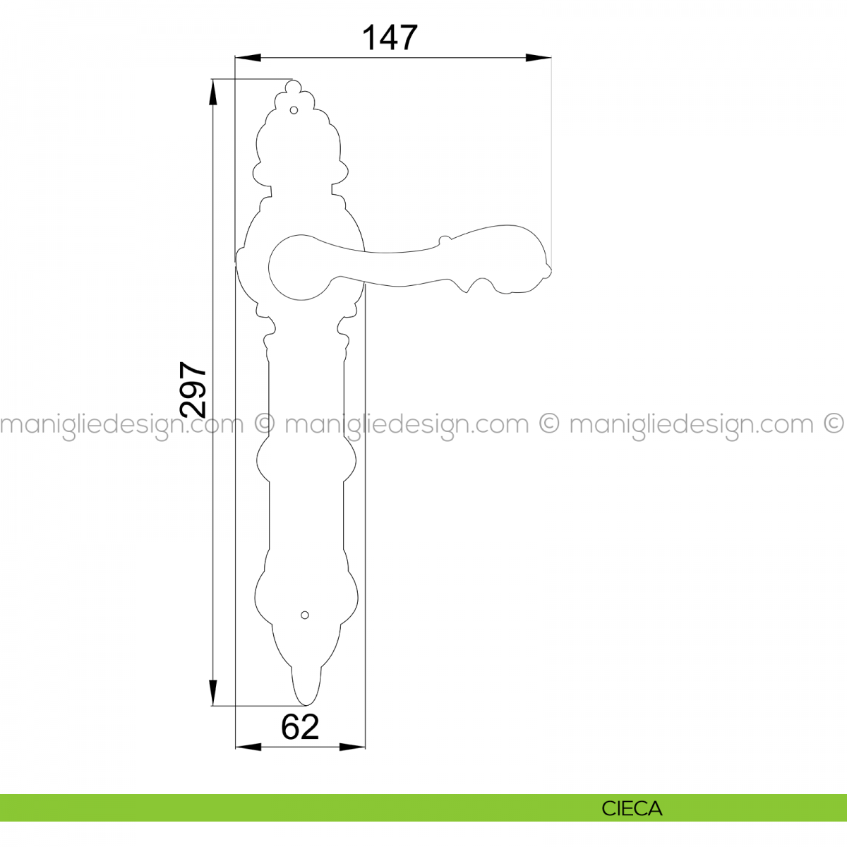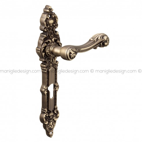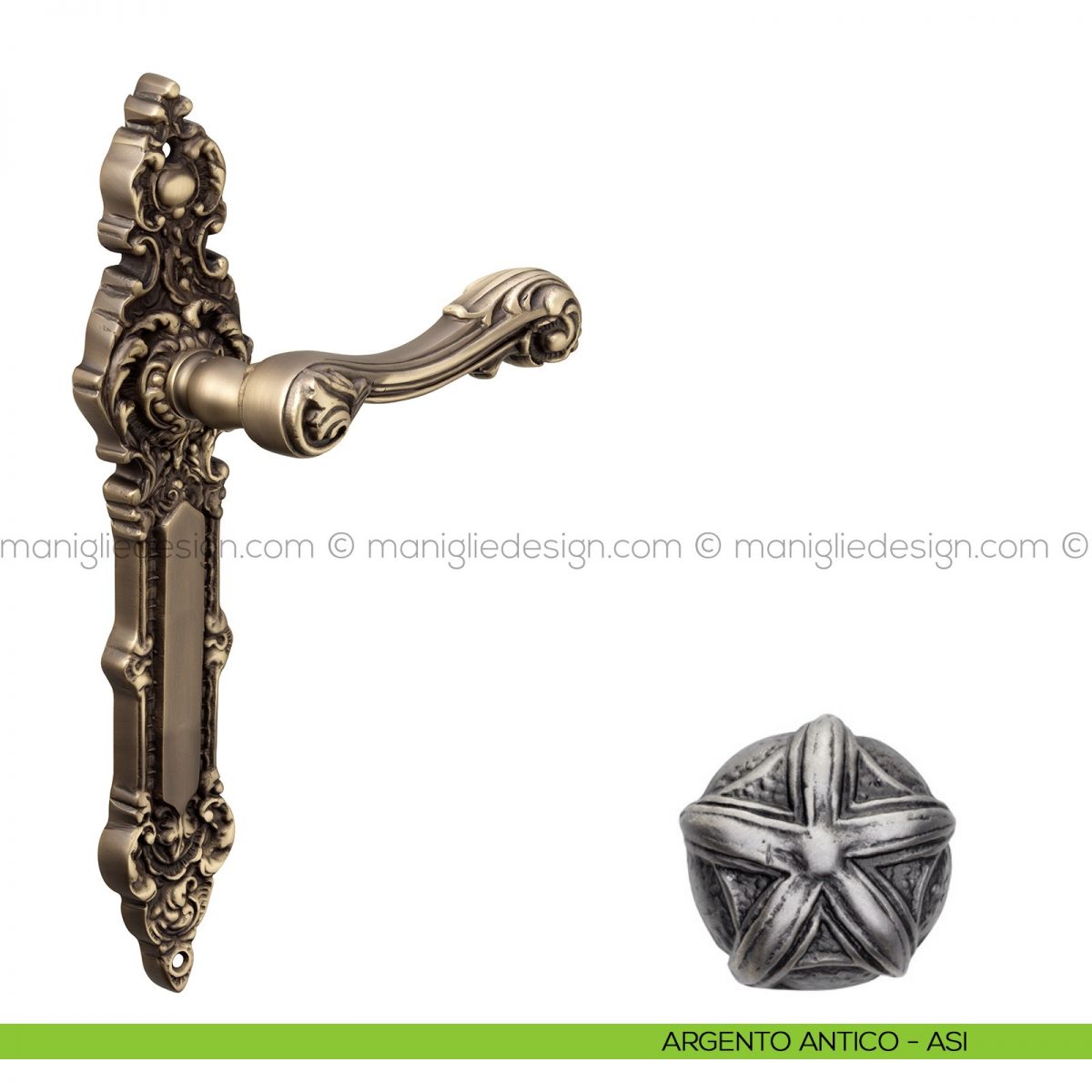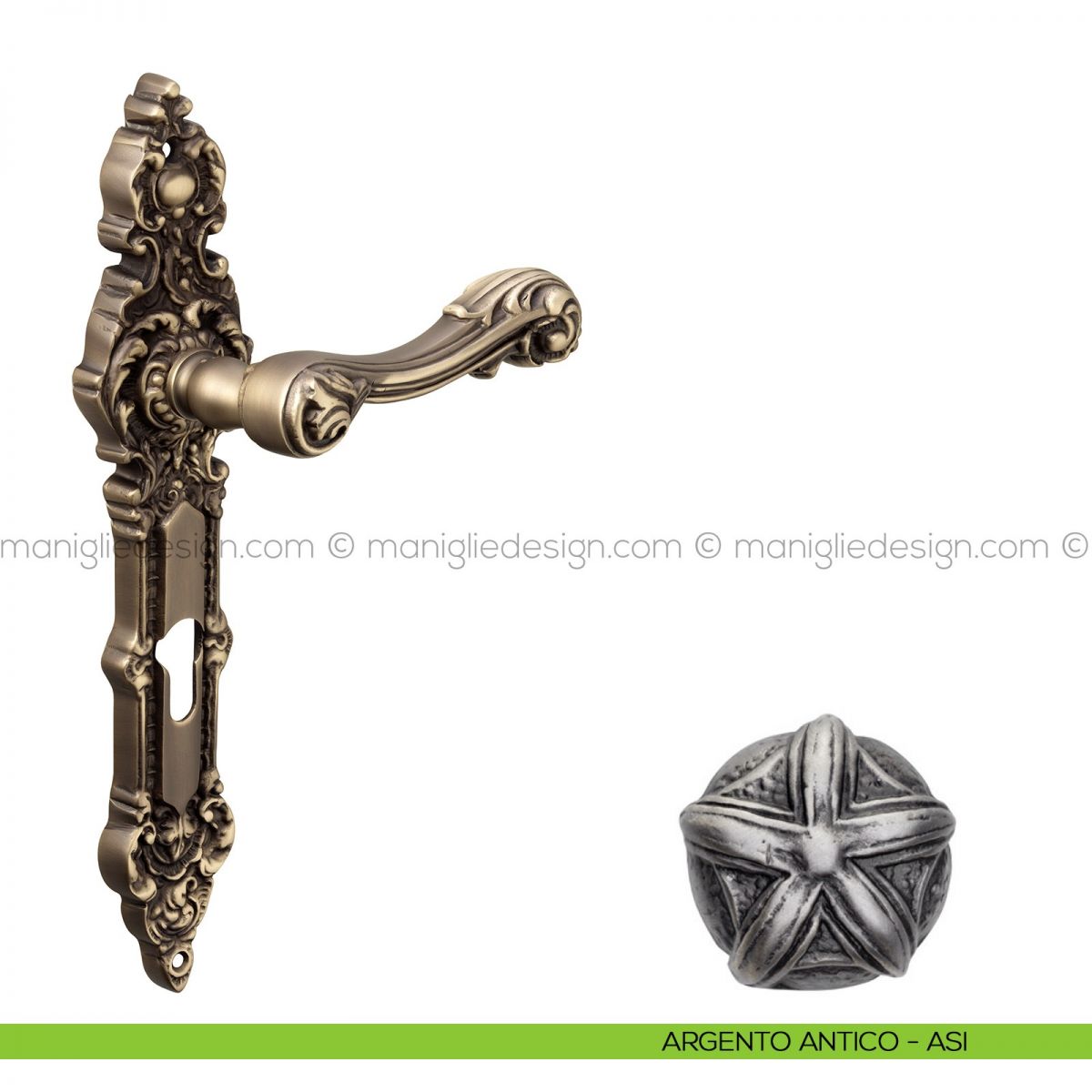 Maniglia per porta con placca Isana Poggi Mariani argento antico - ASI foro patent