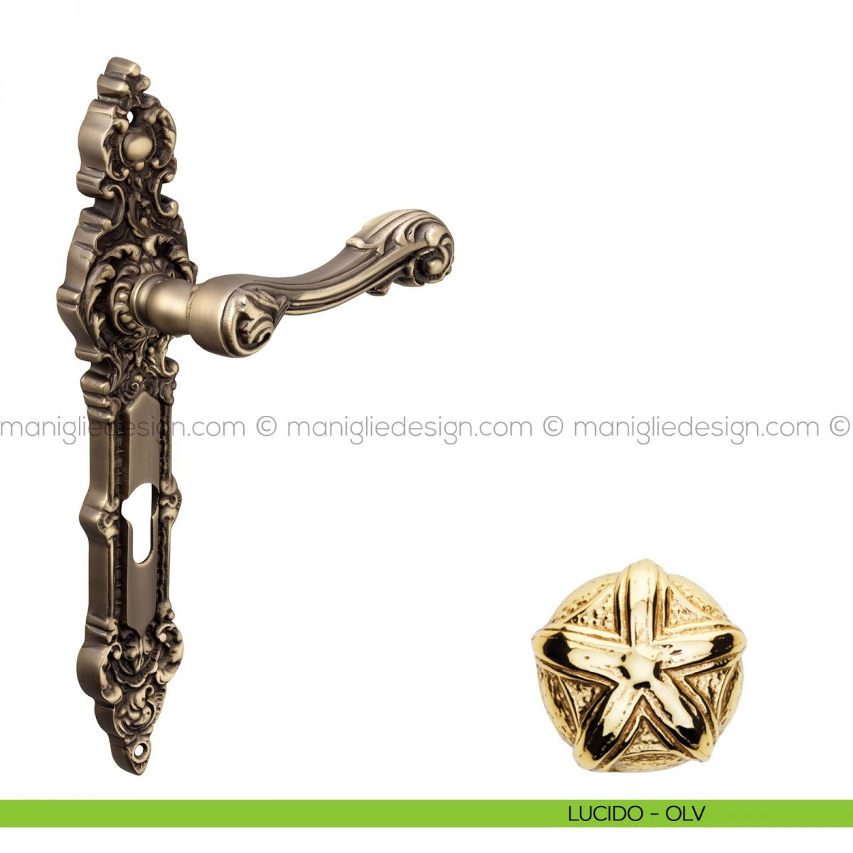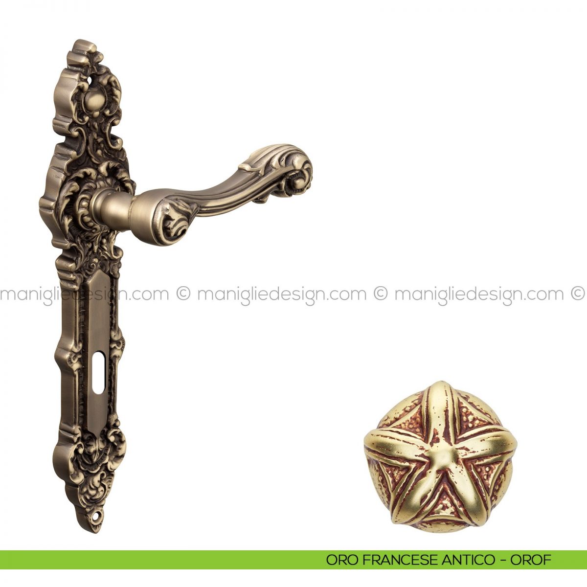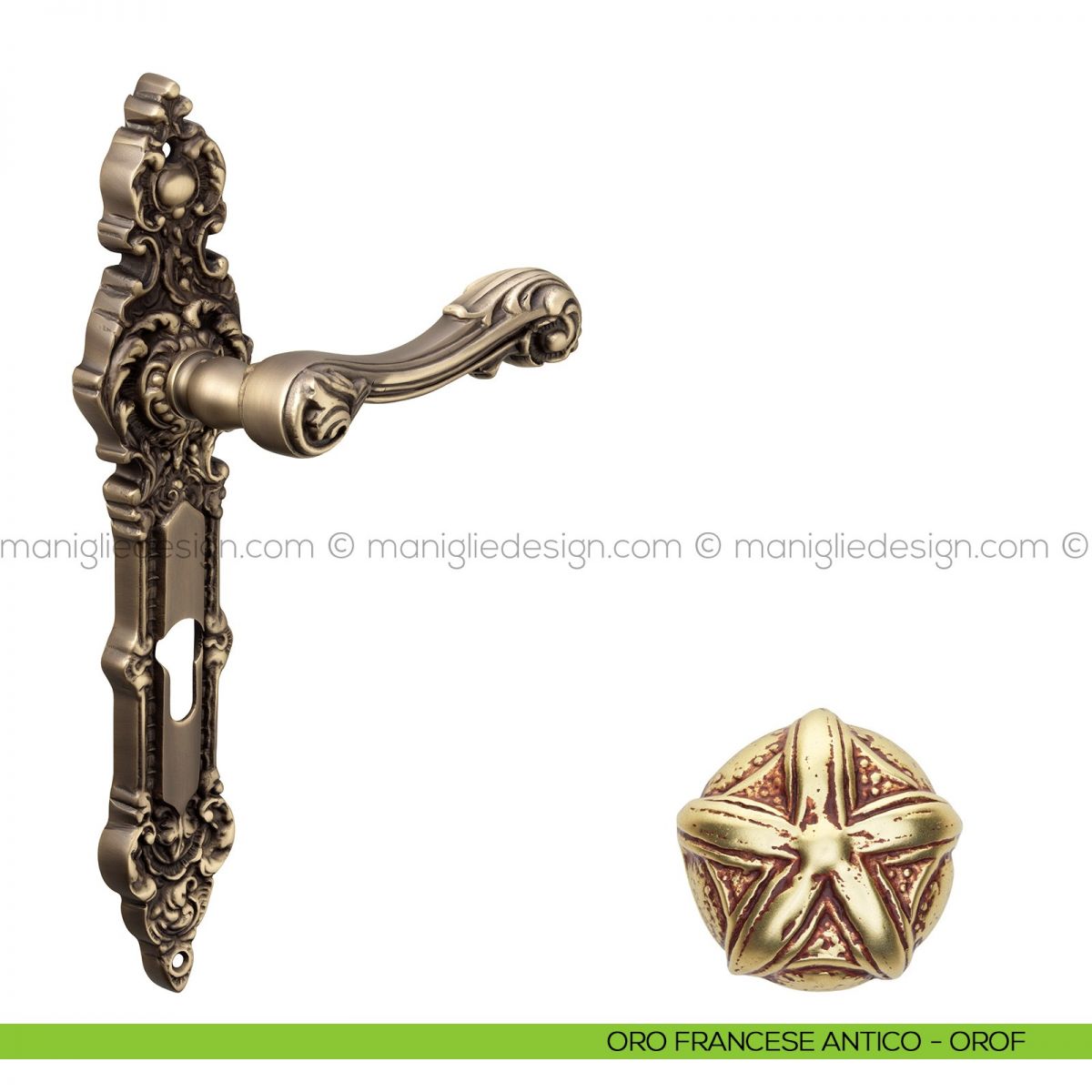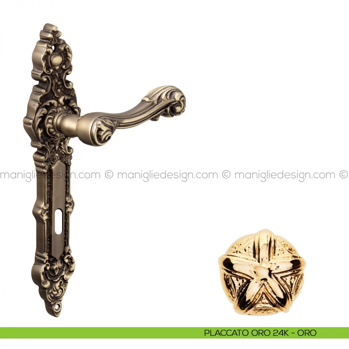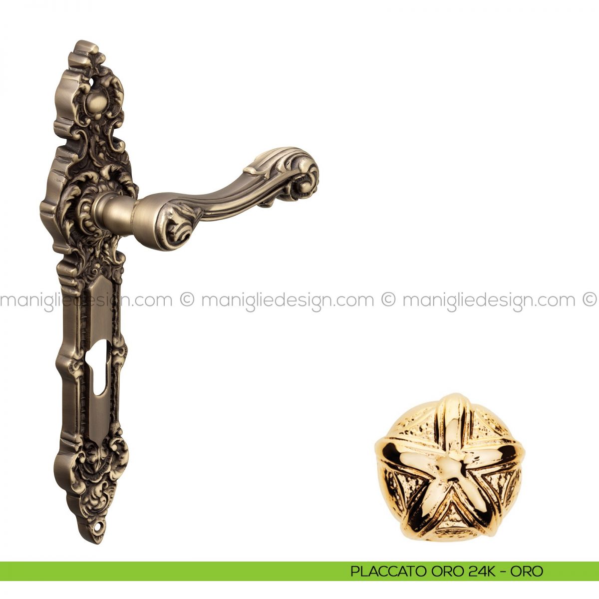 Maniglia per porta con placca Isana Poggi Mariani oro francese antico - OROF foro patent