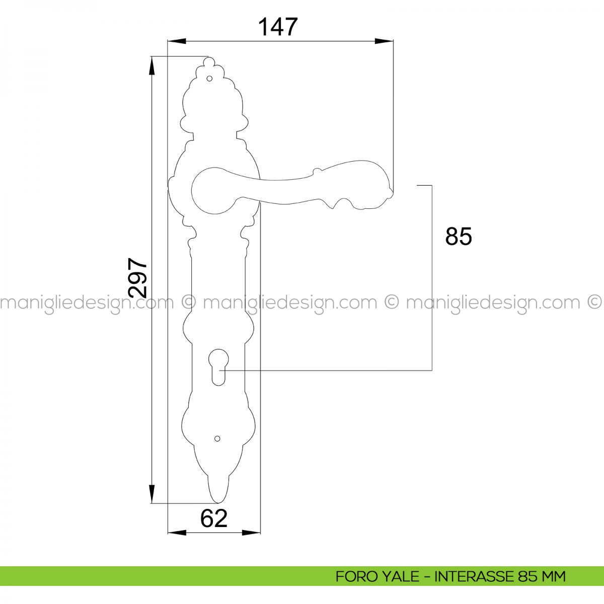 Maniglia per porta con placca Isana Poggi Mariani foro yale interasse 85 mm