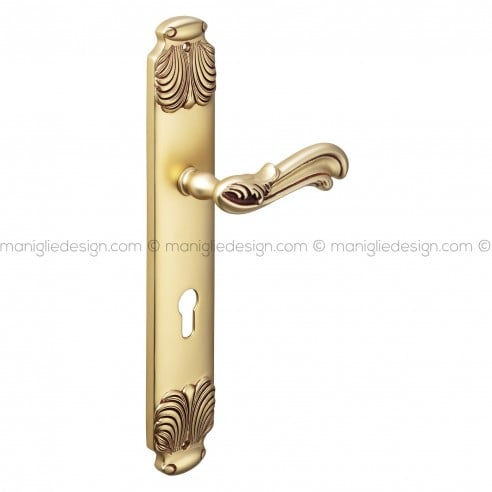 Maniglia per porta con placca Ning Poggi Mariani oro francese antico - OROF foro yale
