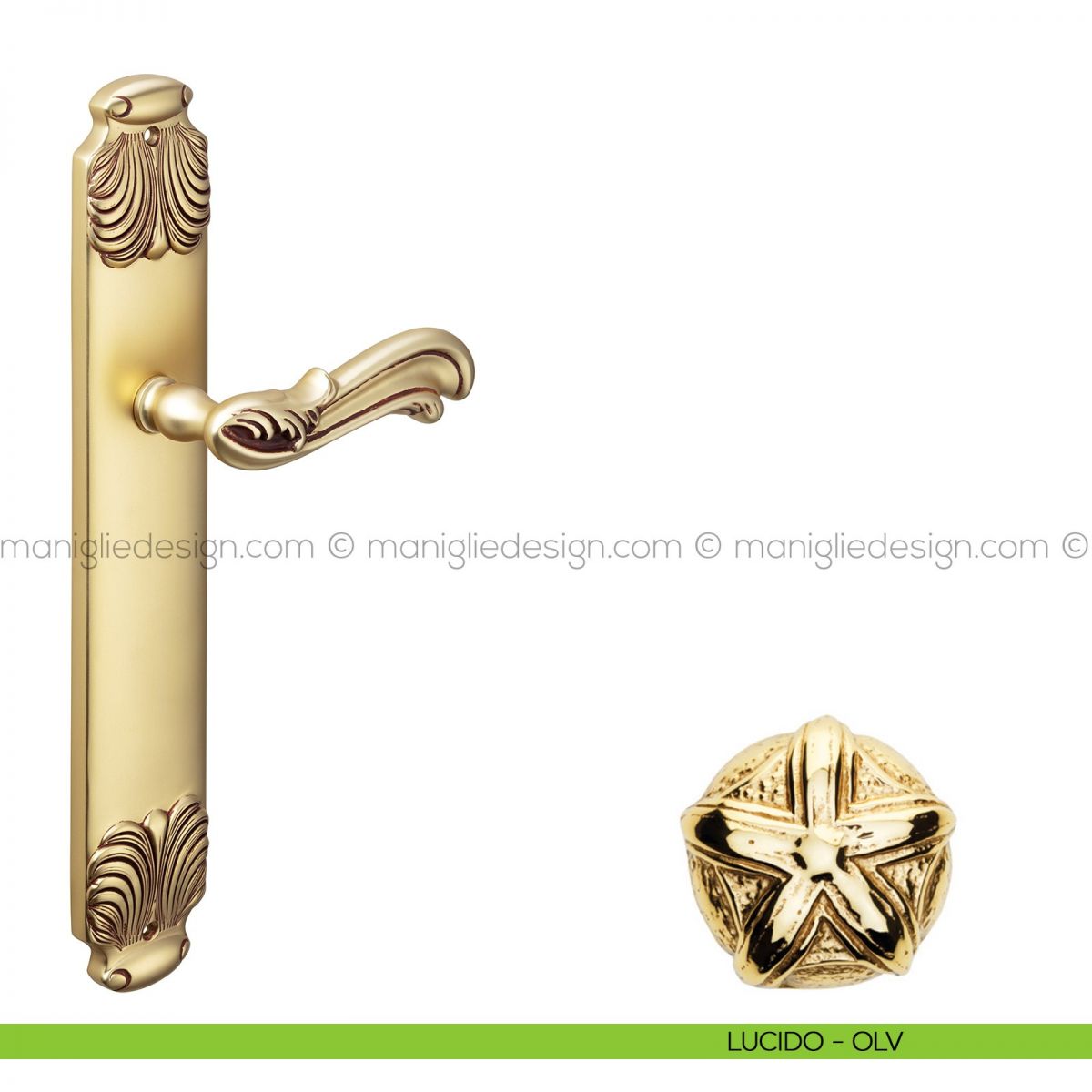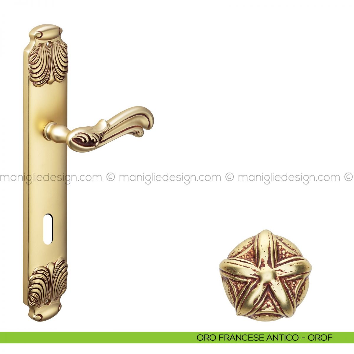 Maniglia per porta con placca Ning Poggi Mariani oro francese antico - OROF foro patent