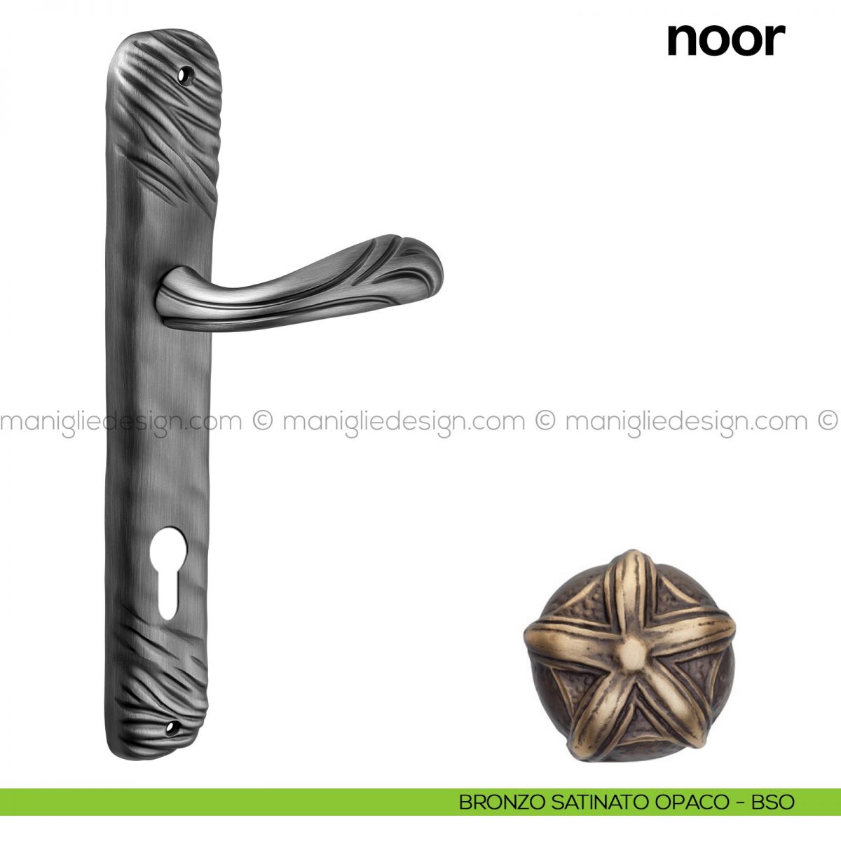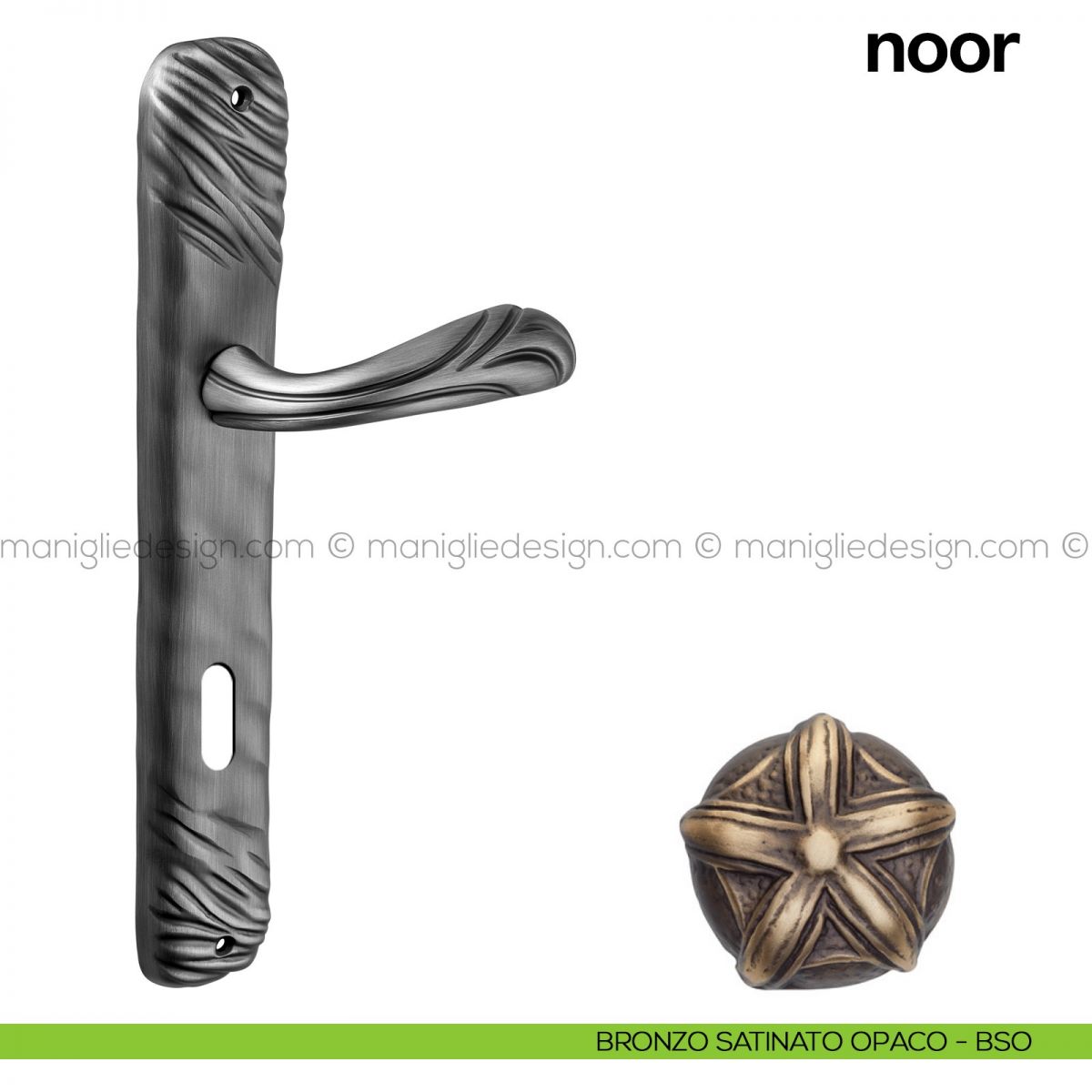 Maniglia per porta con placca Noor Poggi Mariani bronzo satinato opaco - BSO foro yale