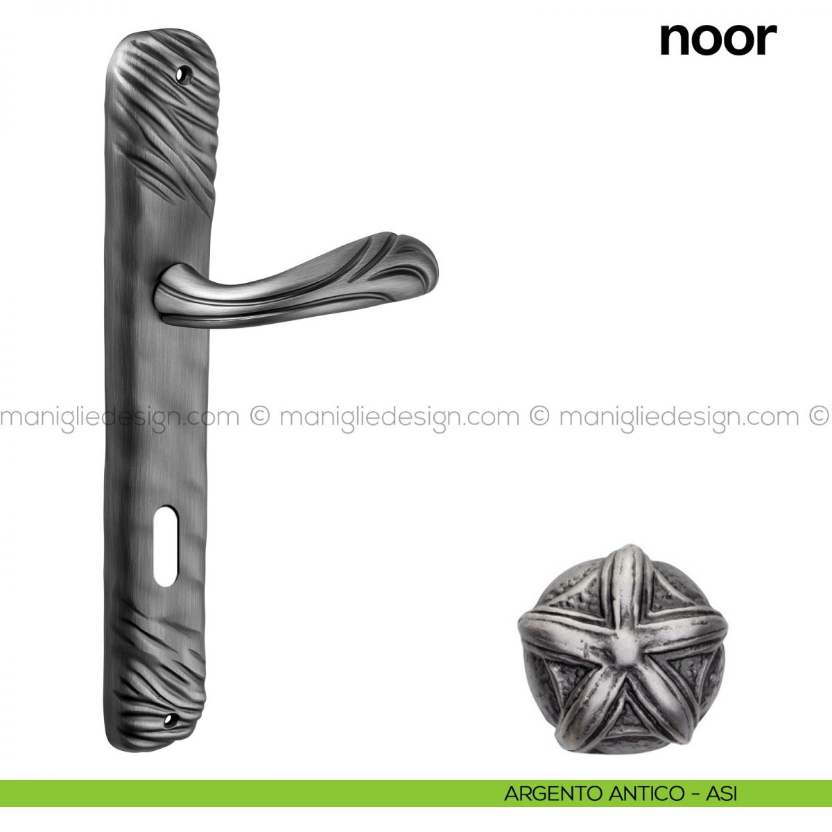Maniglia per porta con placca Noor Poggi Mariani argento antico - ASI foro patent