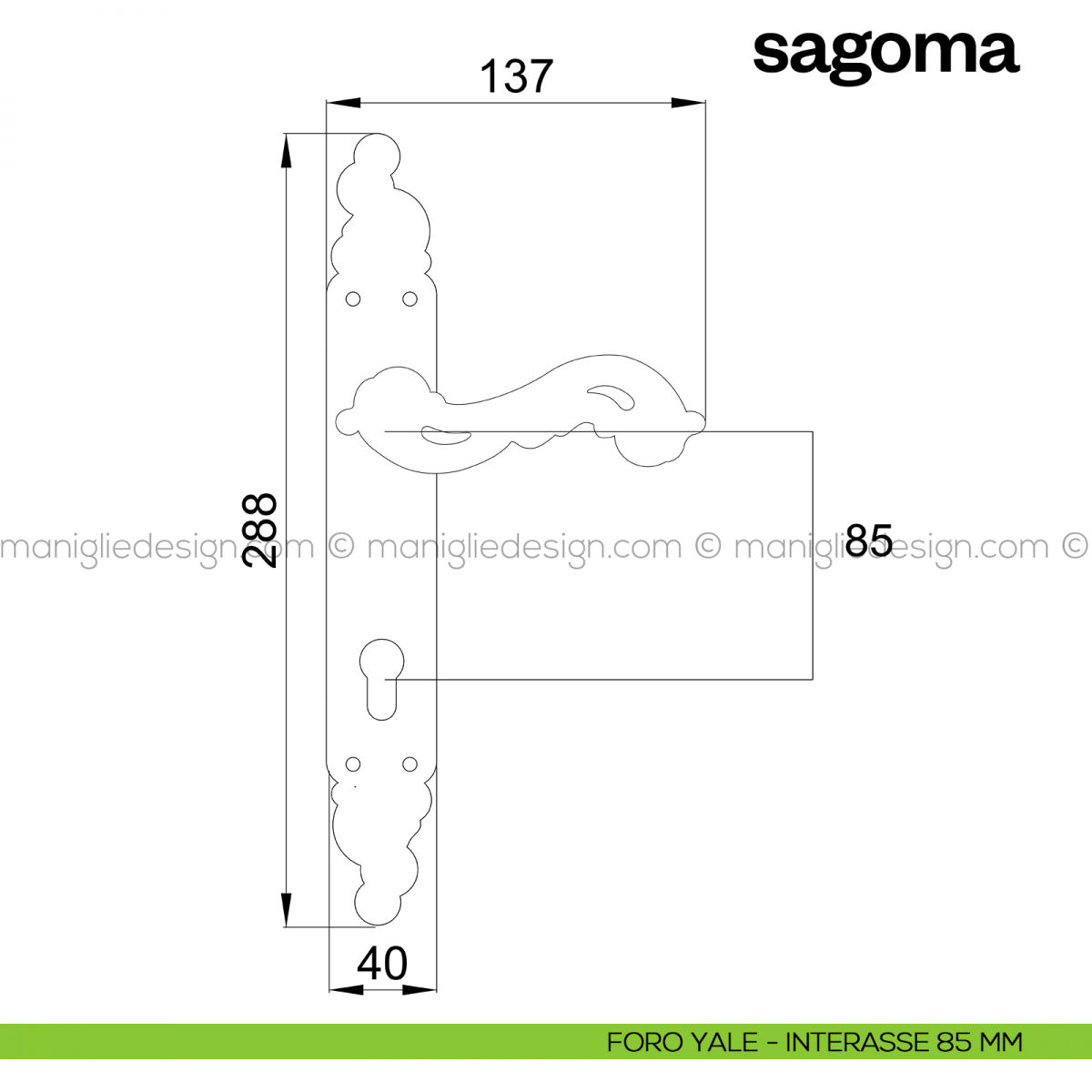 Maniglia per porta interna Sagoma Poggi Mariani con placca.