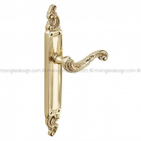 Maniglia per porta con placca Selene Poggi Mariani oro francese antico - OROF foro patent