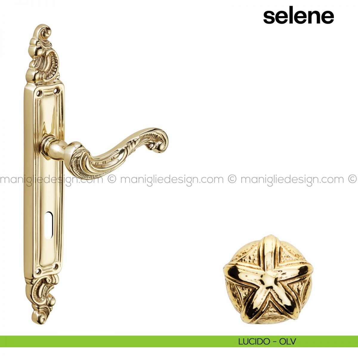 Maniglia per porta con placca Selene Poggi Mariani lucido - OLV foro yale