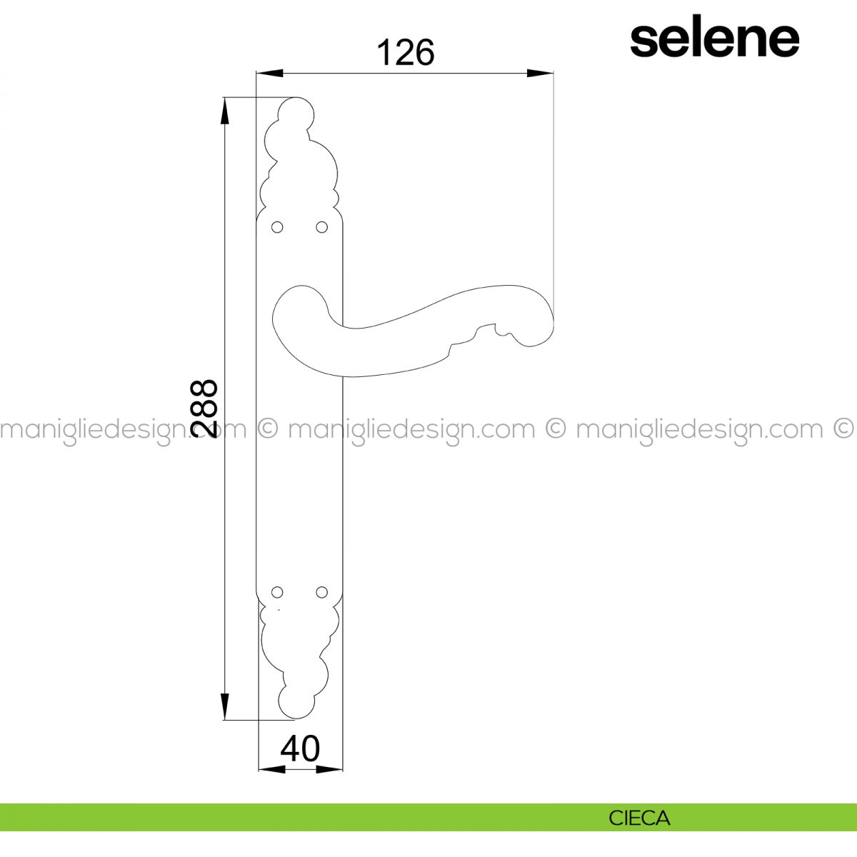 Maniglia per porta con placca Selene Poggi Mariani foro patent interasse 70 mm