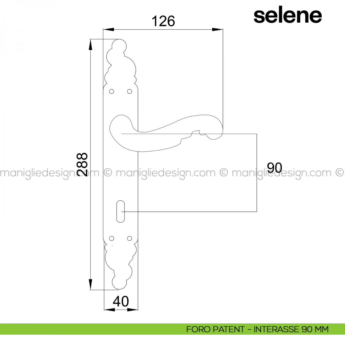 Maniglia per porta con placca Selene Poggi Mariani foro patent interasse 90 mm