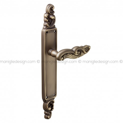 Maniglia per porta con placca Stefani Poggi Mariani bronzo satinato opaco - BSO foro yale