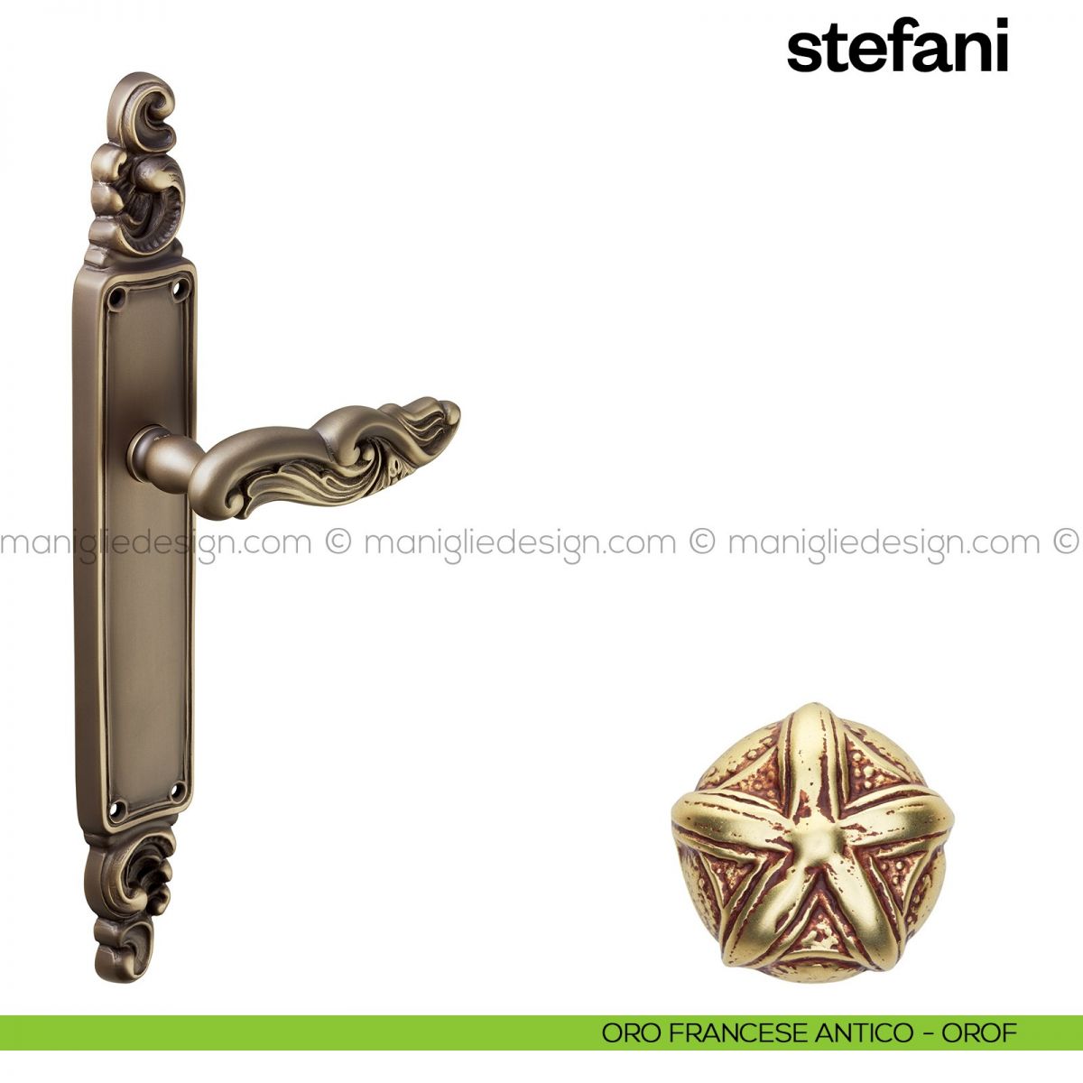 Maniglia per porta con placca Stefani Poggi Mariani oro francese antico - OROF foro patent
