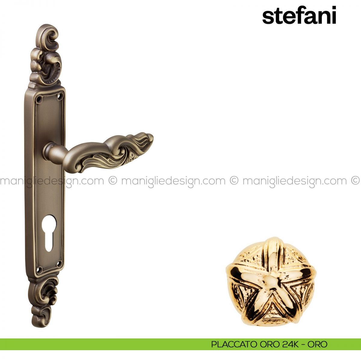 Maniglia per porta con placca Stefani Poggi Mariani placcato oro 24K - ORO foro patent