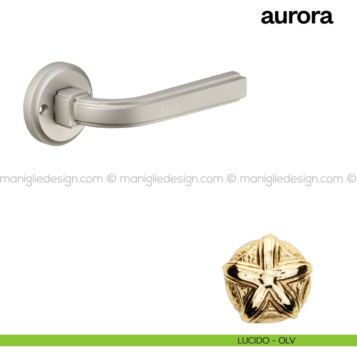 Maniglia per porta interna Aurora Poggi Mariani con rosetta e bocchetta tonda.