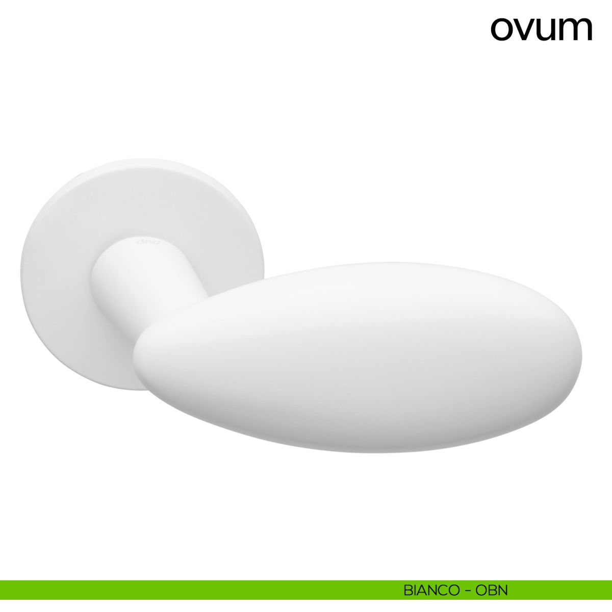 Maniglia a uovo per porta interna Ovum Dnd Handles con rosetta e bocchetta tonda. Design by Poggi Mariani.