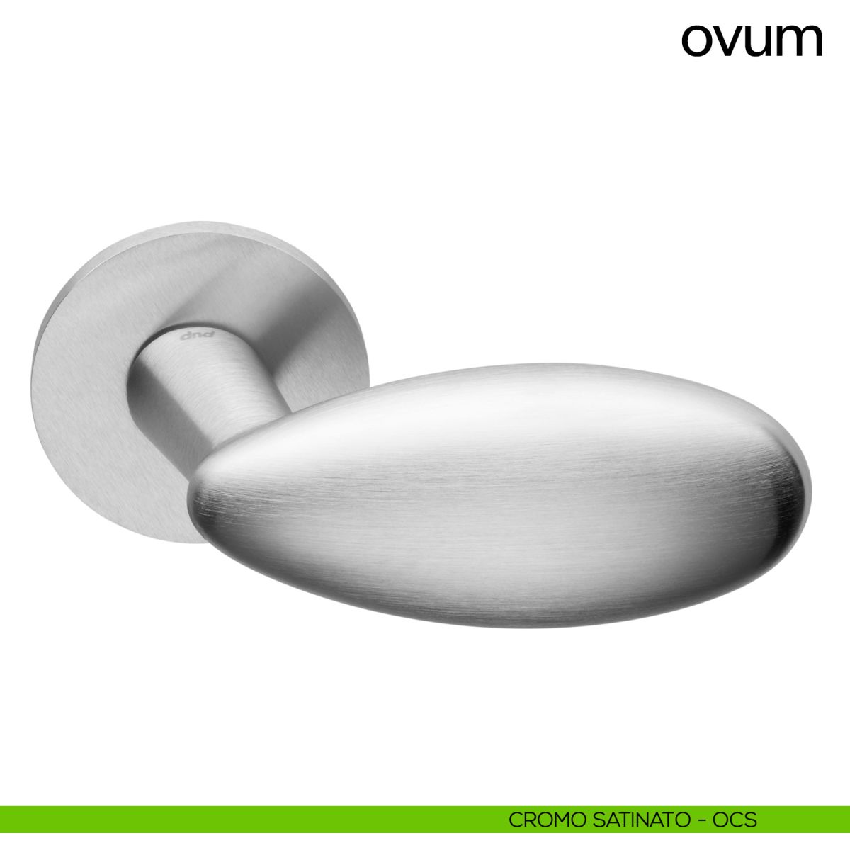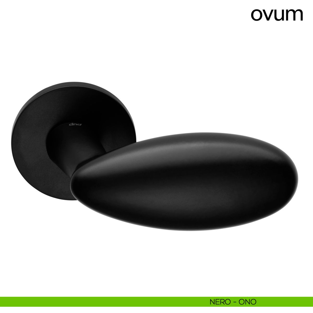 Maniglia a uovo per porta interna Ovum Dnd Handles con rosetta e bocchetta tonda.