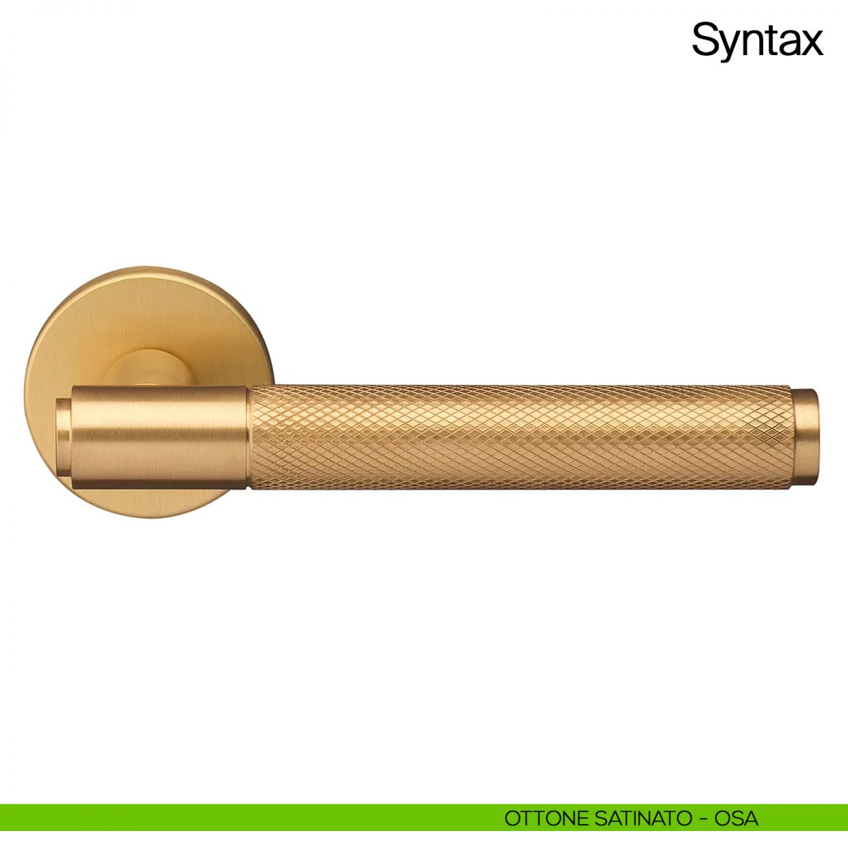 Syntax Manital è la nuova linea di maniglie di design che combina una leggera lavorazione zigrinata a linee incrociate, ad una semplice e calibrata forma cilindrica, per dare vita ad un modello che unisce con equilibrio stile classico e contemporaneo, per un risultato di sobria e ricercata eleganza. Manital, portavoce di una lavorazione e qualità tutta Made in Italy, ha scelto di utilizzare per questa maniglia un segno distintivo di lunga tradizione, la zigrinatura, che impreziosisce l'oggetto e rende l'impugnatura particolarmente salda. Allo stesso tempo, le misure, le forme calibrate ed ergonomiche, insieme alle differenti finiture e all'effetto chiaroscuro della zigrinatura, disegnano un modello contemporaneo, dinamico, che risalta negli ambienti. Syntax è una maniglia in ottone disponibile nelle finiture ottone lucido, cromato, nickel, bronzato, nero antracite e rame lucido.