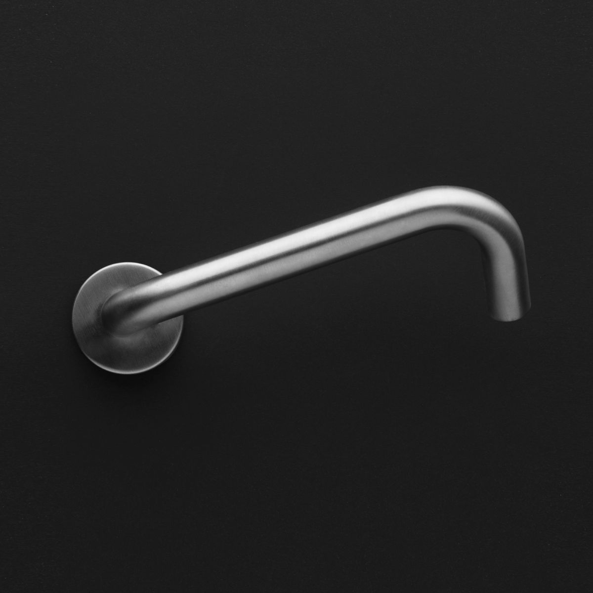 Maniglia per porta NoHand Manital su rosetta tonda. Design by Mario Mazzer e Giovanni Crosera.