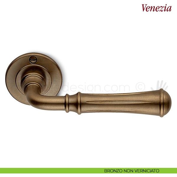 Maniglia per porta interna Venenia Antologhia con rosetta e bocchetta tonda senza molla di ritorno.