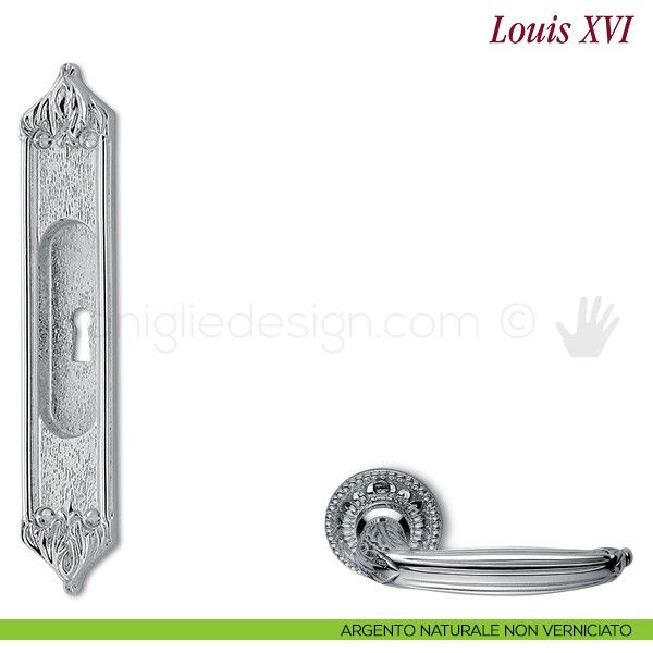 Maniglione per porta Louis XVI Antologhia zancato completo di accessori per il fissaggio non passante (con viti a vista).