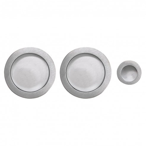 Maniglia per porta scorrevole tonda con ditale di trascinamento cromo satinato.