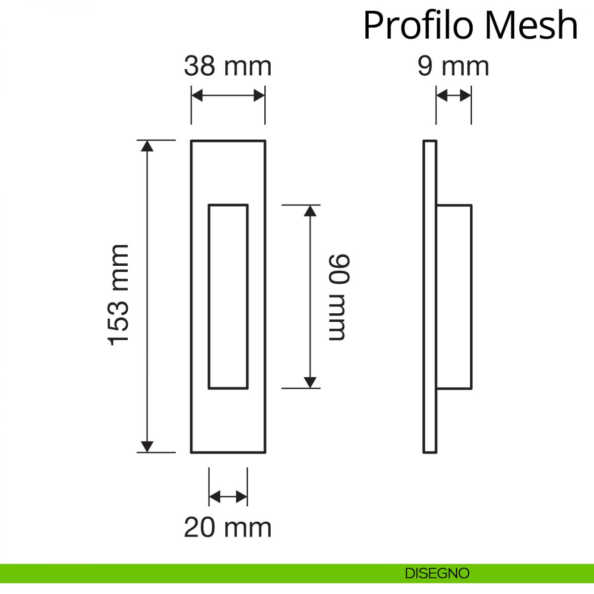 Maniglia ad incasso rettangolare per porta scorrevole Profilo Linea Calì cieca.