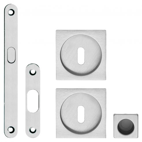 Kit maniglia incasso quadrata foro chiave con maniglia di trascinamento, serratura e chiave per porta scorrevole Zincral Linea Calì.