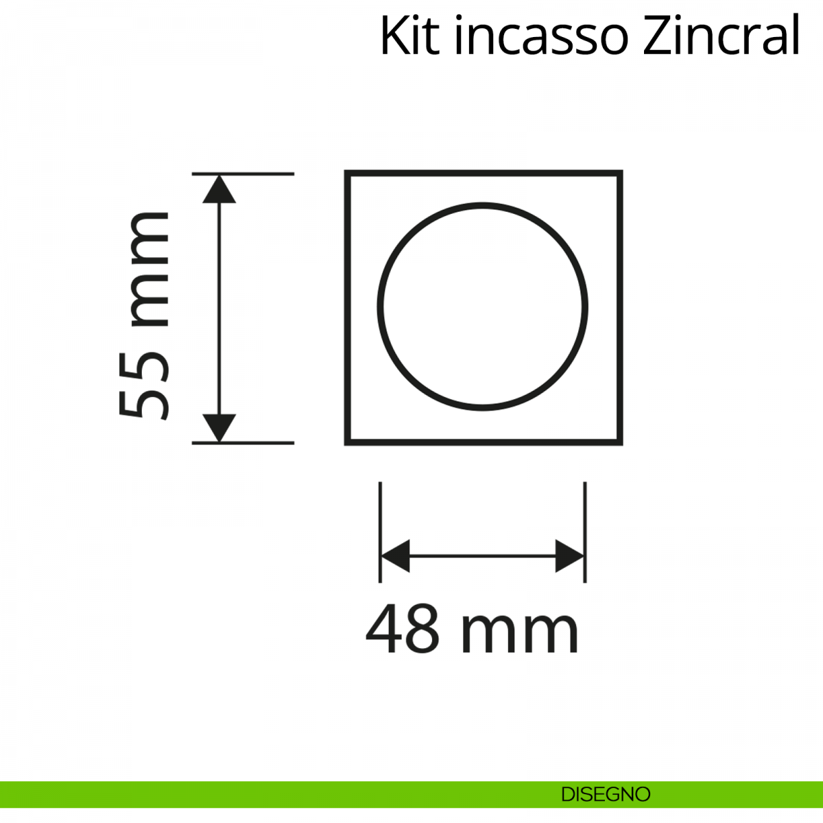 Kit maniglia incasso quadrata con doppio anello attivo-attivo per porta scorrevole Zincral Linea Calì.