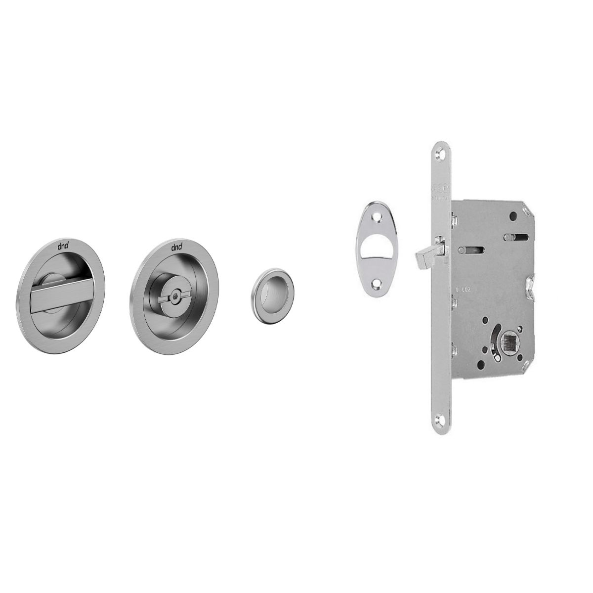 Maniglia per porta scorrevole con nottolino, taglio vite, ditale di trascinamento e serratura Master Tonda dnd handles.