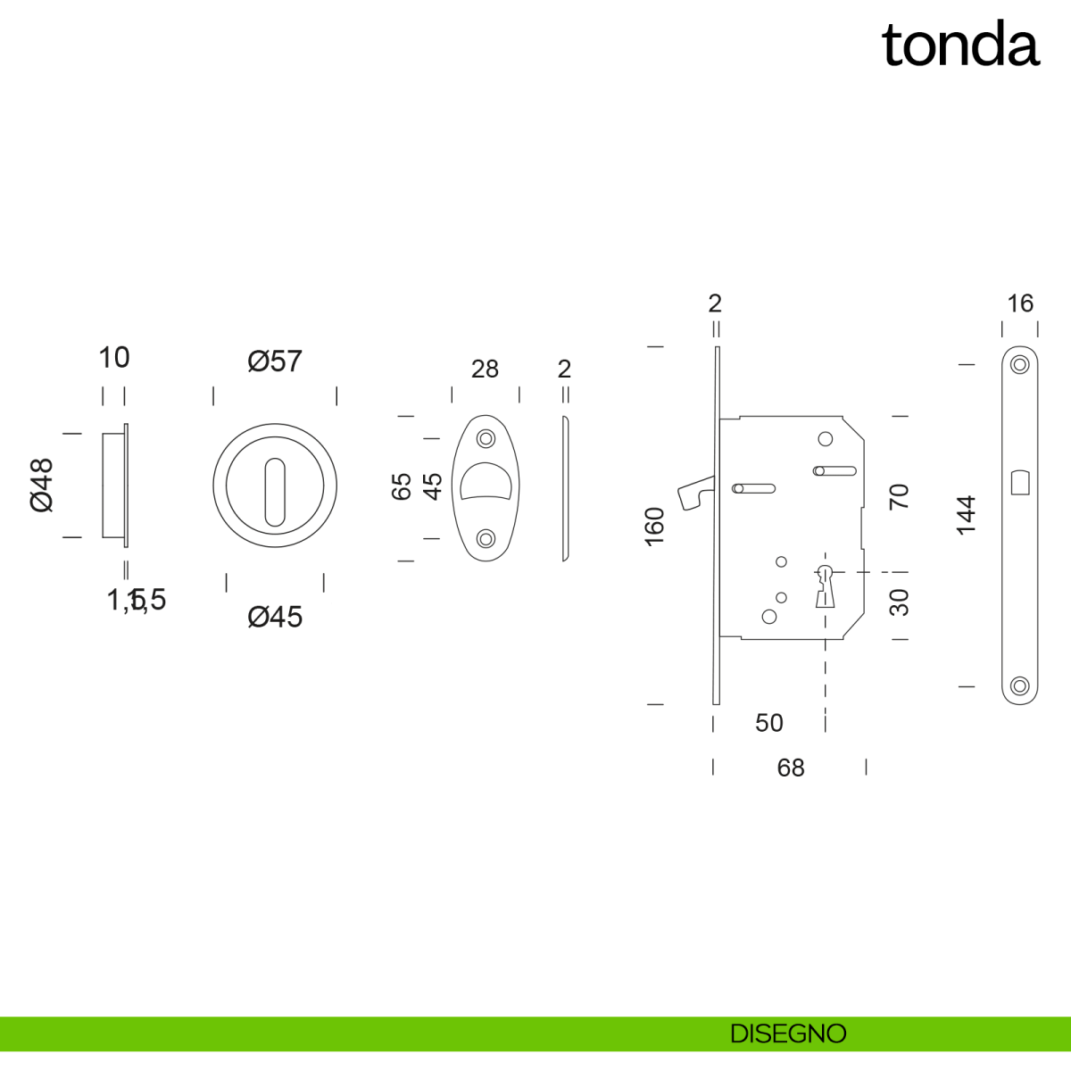 Maniglia per porta scorrevole con chiave, serratura a gancio AGB e ditale di trascinamento Tonda dnd handles. Design by Dnd Technical Division.