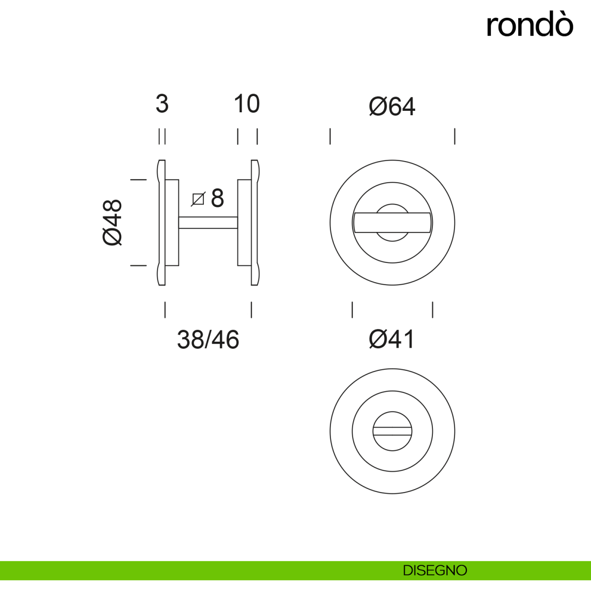 Maniglia per porta scorrevole Rondò dnd Handles con nottolino, taglio vite e ditale di trascinamento senza serratura.