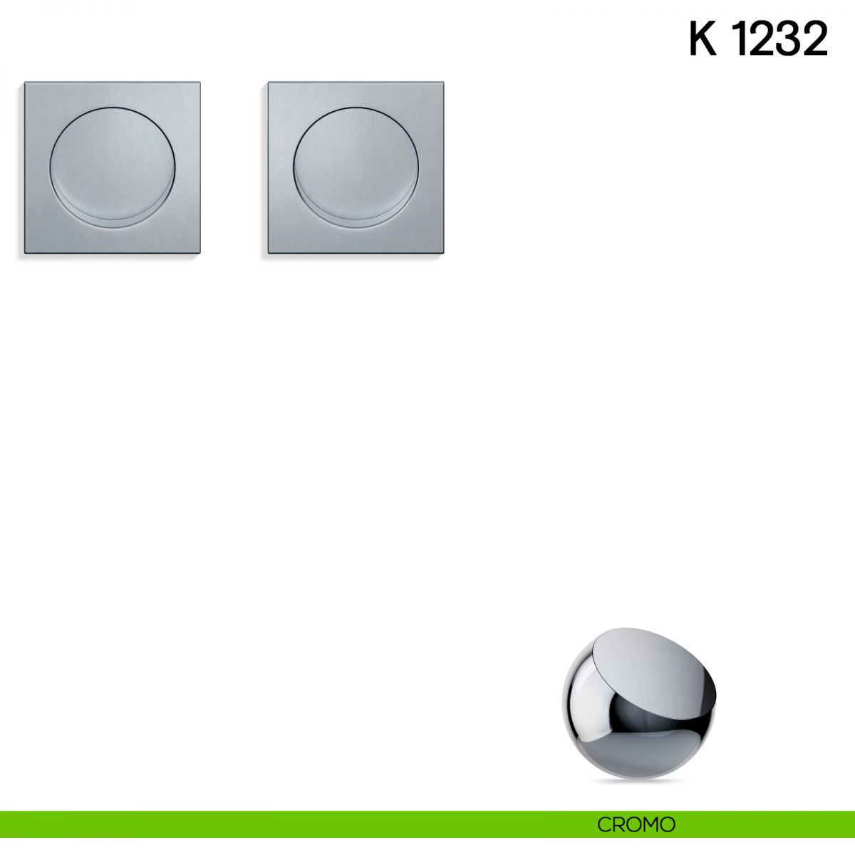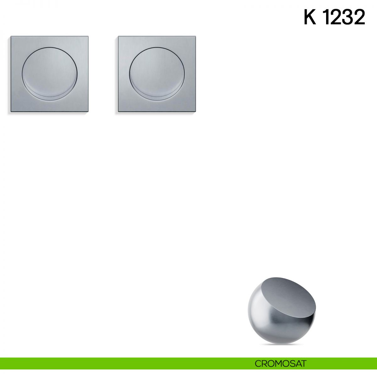 Maniglia per porta scorrevole K 1232 Valli collezione Fusital senza serratura composto da due maniglie da incasso e maniglietta di trascinamento.