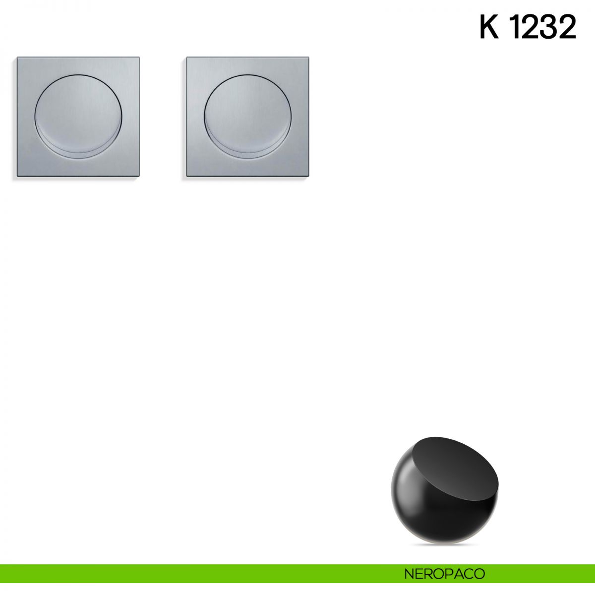 Maniglia per porta scorrevole K 1232 Valli collezione Fusital senza serratura composto da due maniglie da incasso e maniglietta di trascinamento. Design by Yoshimi Kono.