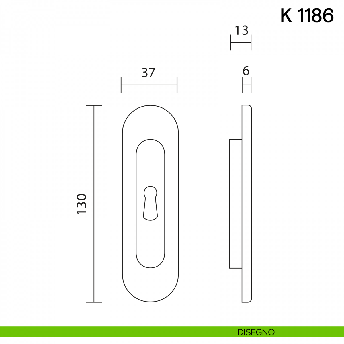 Maniglia ad incasso per porta scorrevole K 1186 SFC Valli collezione Lab senza foro chiave.