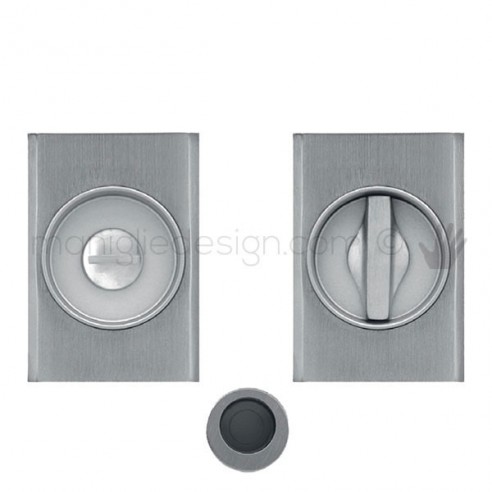 Maniglia per porta scorrevole Clip Mandelli composta da due maniglie ad incasso con dispositivo chiusura nottolino (interno ed esterno) e maniglietta di trascinamento (senza serratura).
