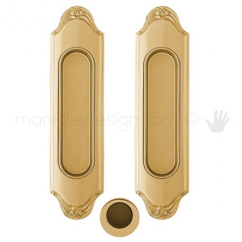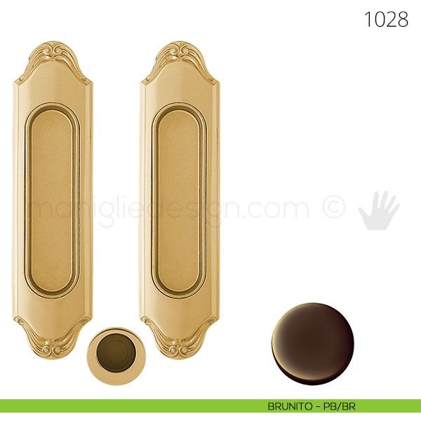 Maniglia per porta scorrevole Clip Mandelli senza serratura composto da due maniglie da incasso e maniglietta di trascinamento.